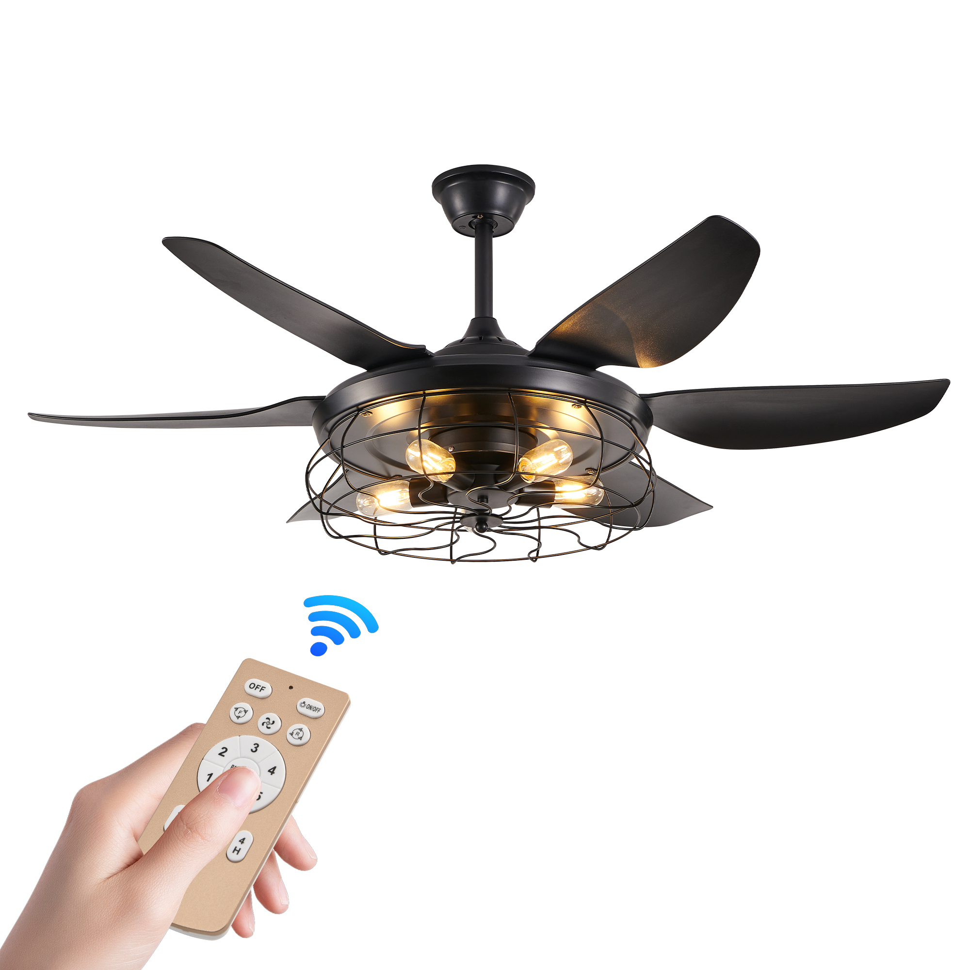Fashionable industrial style design: adopting modern black and metal mesh cover design, showcasing the unique charm of industrial style, suitable for various home decoration styles, and increasing the personality and taste of the space.Multi functional integrated design: integrating ceiling fan and lighting, not only providing comfortable air circulation, but also effective lighting, saving space, and perfectly adapting to various room layouts.Remote Control Intelligent Operation: Equipped with a remote control, it is easy to adjust wind speed and lighting, making control more convenient. It can be adjusted without leaving the seat, improving user comfort.Quiet operation: Equipped with high-quality motors, it runs smoothly and has low noise, ensuring that it will not disturb sleep when used at night, suitable for quiet environments such as bedrooms and living rooms.Easy to install and maintain: Easy to install, equipped with all necessary accessories and instructions, even DIY installation is very easy; And the cleaning and maintenance are simple, maintaining the perfect appearance of the ceiling fan and lighting fixtures.