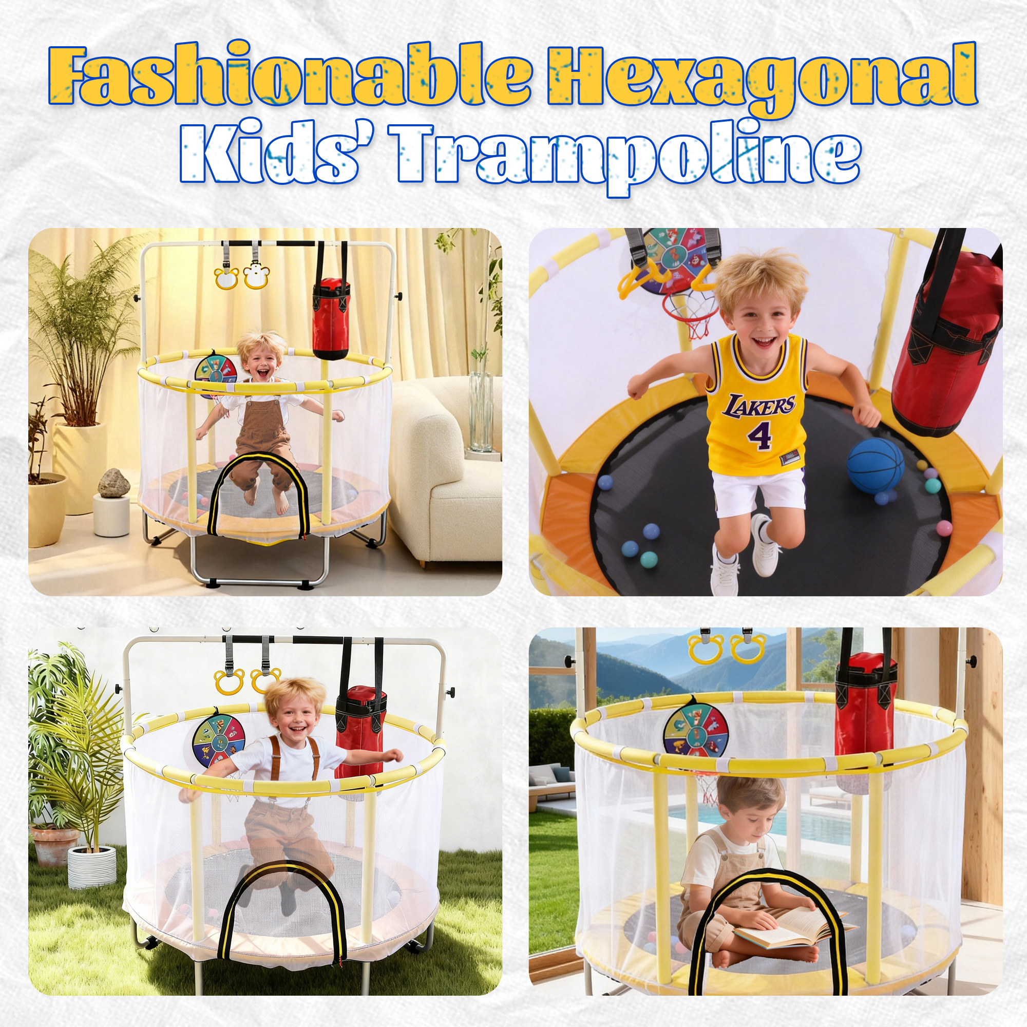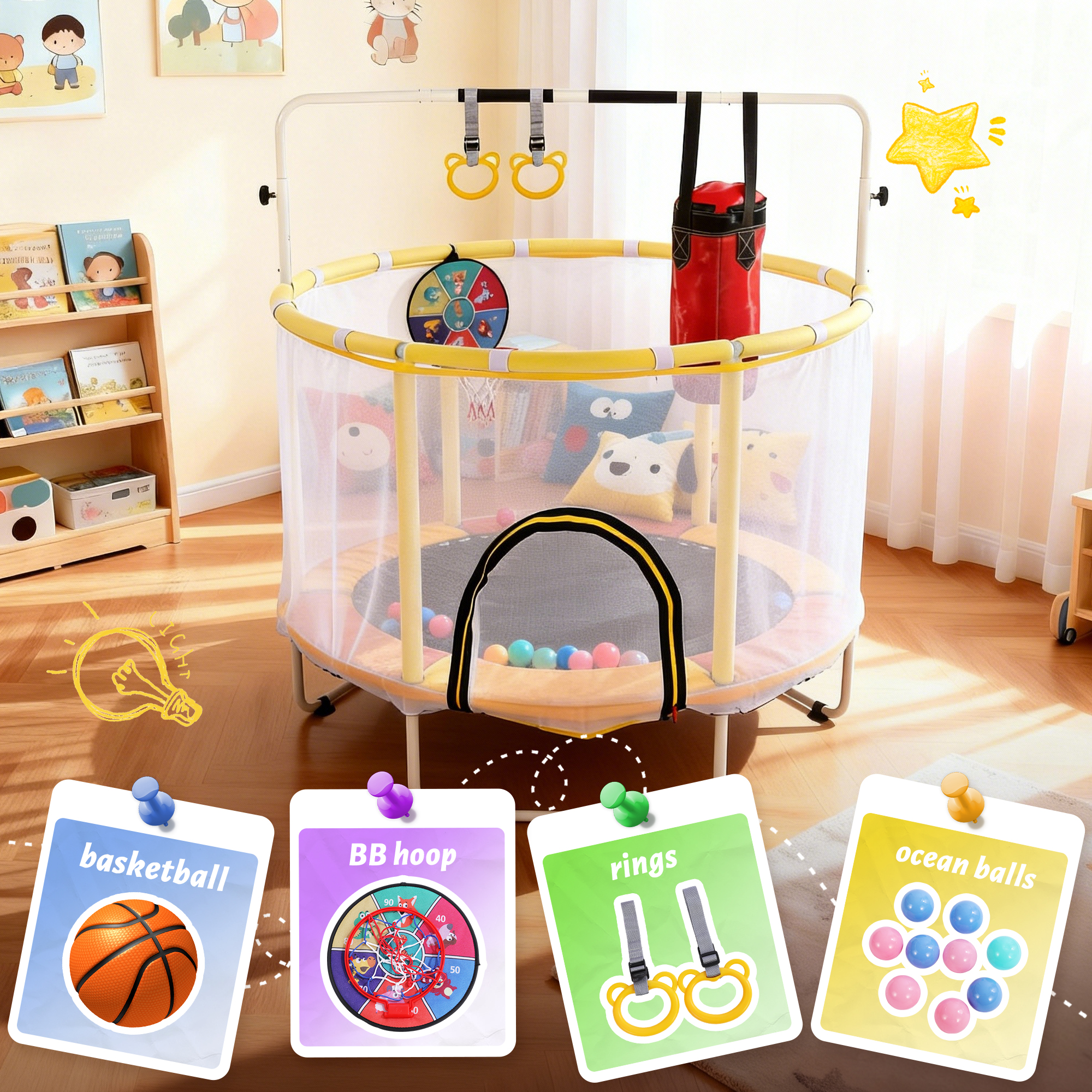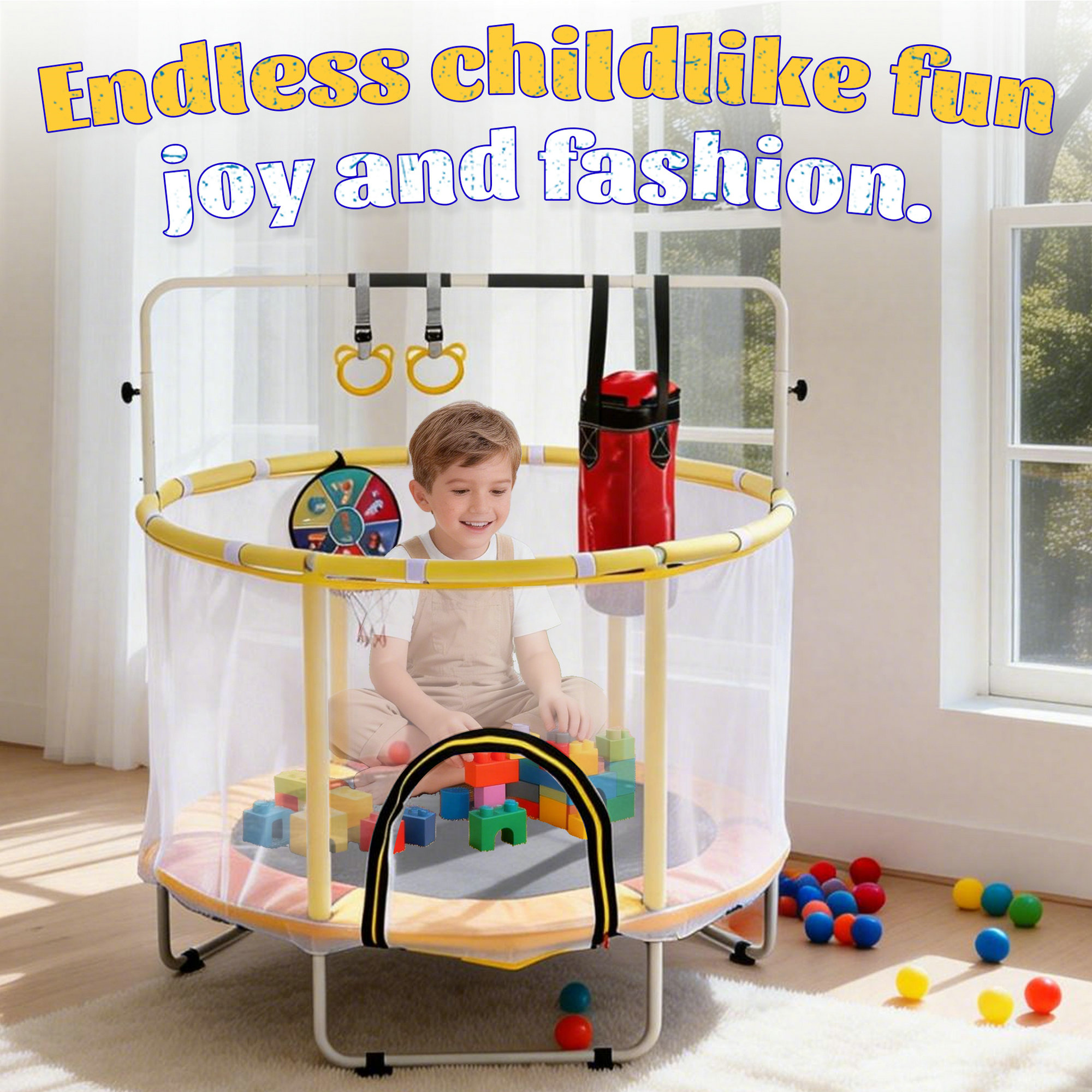 Product Name:54 inch Mini indoor and OutdoorToddler Trampoline With Safety Net, Antislip Safe Design, Round Jumping Toy,With Boxing Bag ,Ring and Basketball Hoop, With Adjustable Gym Bar,Gift for Boys& Girls