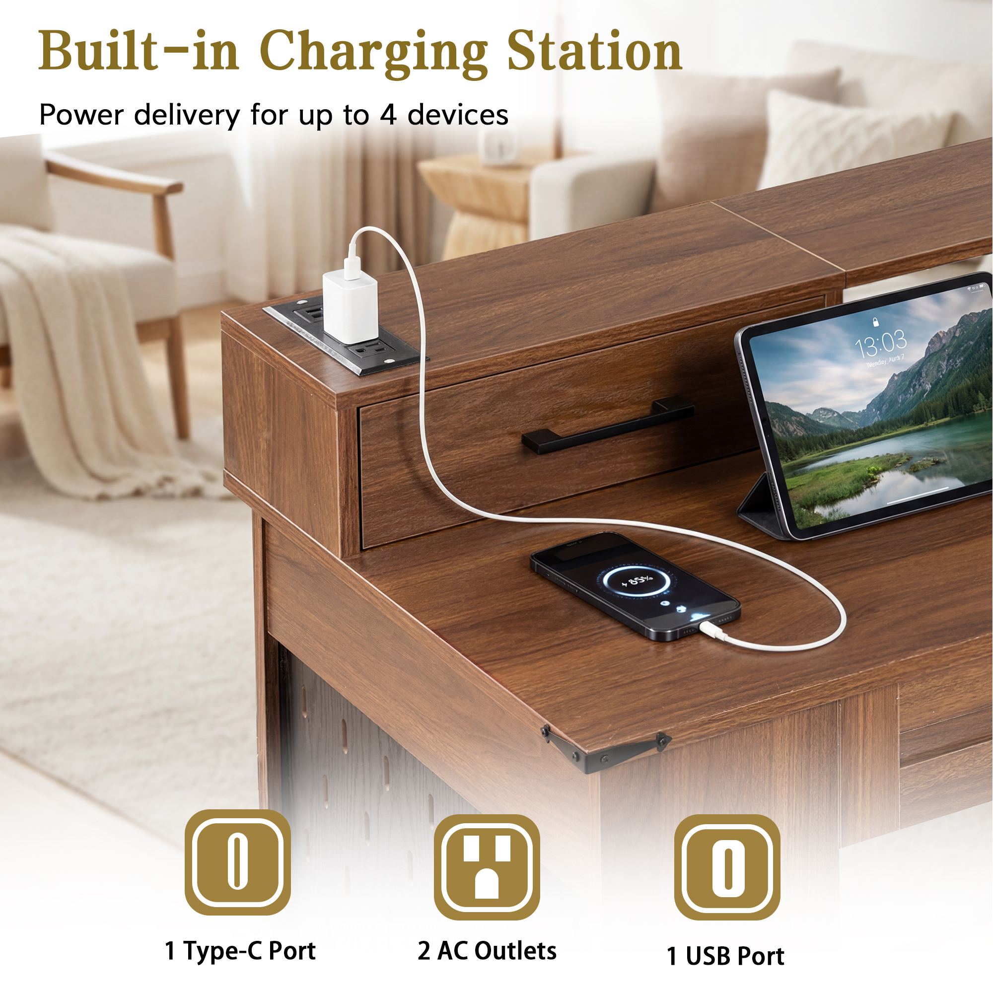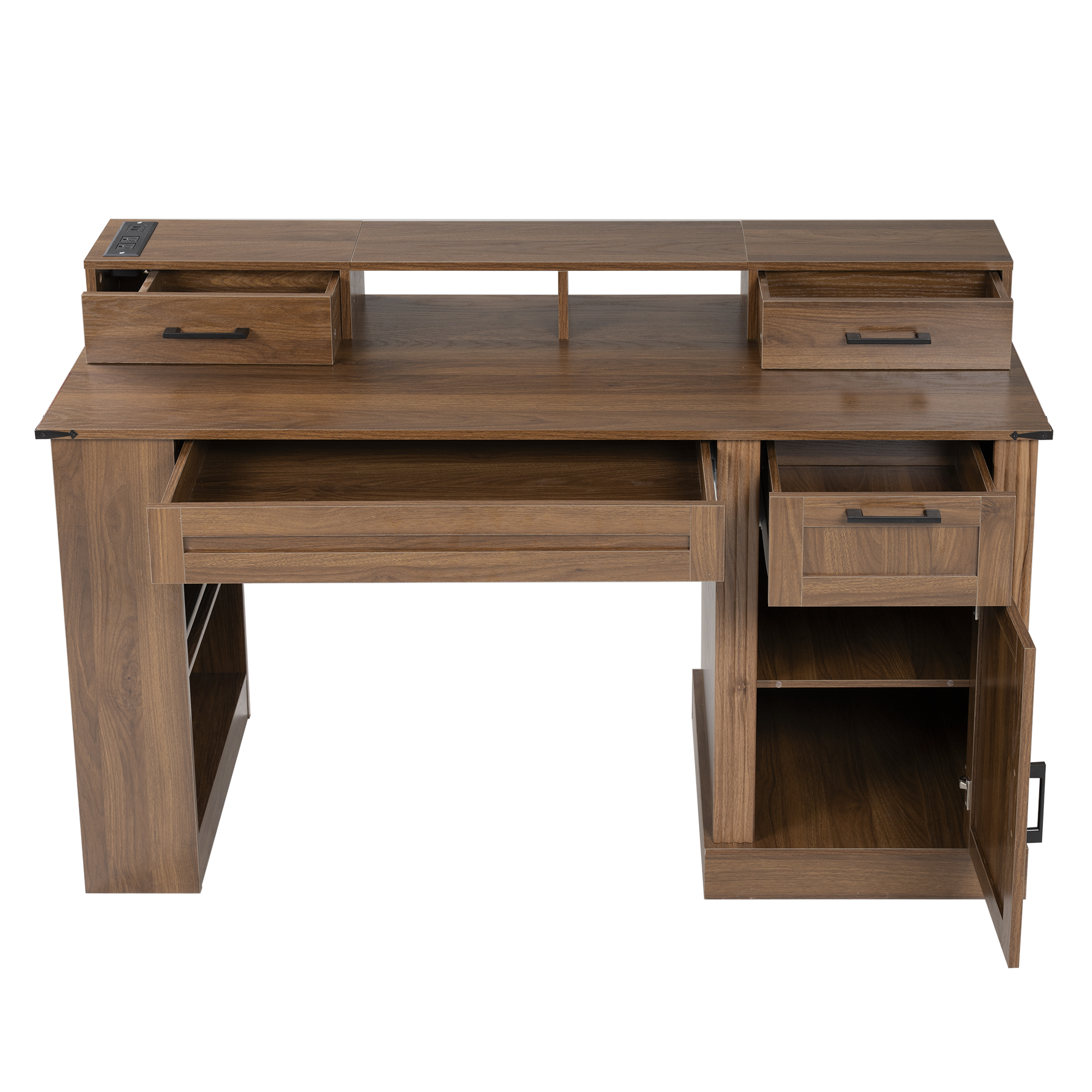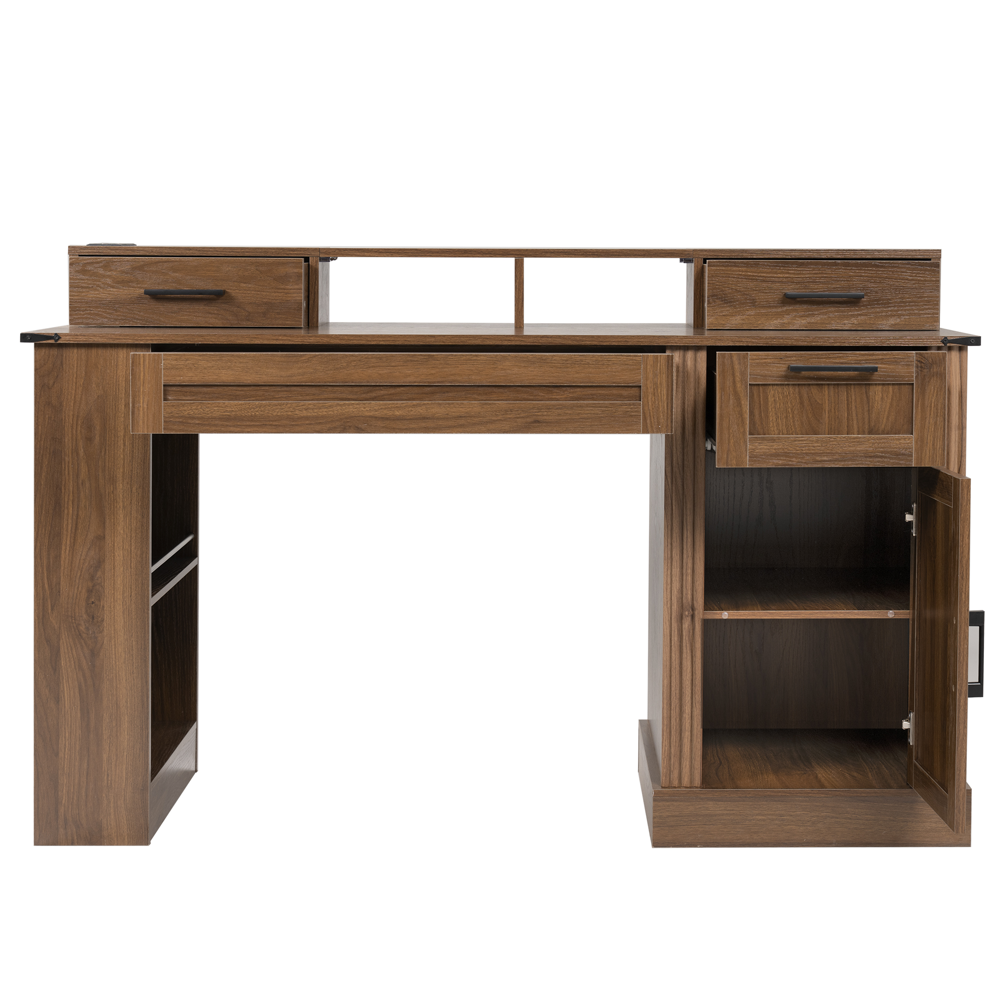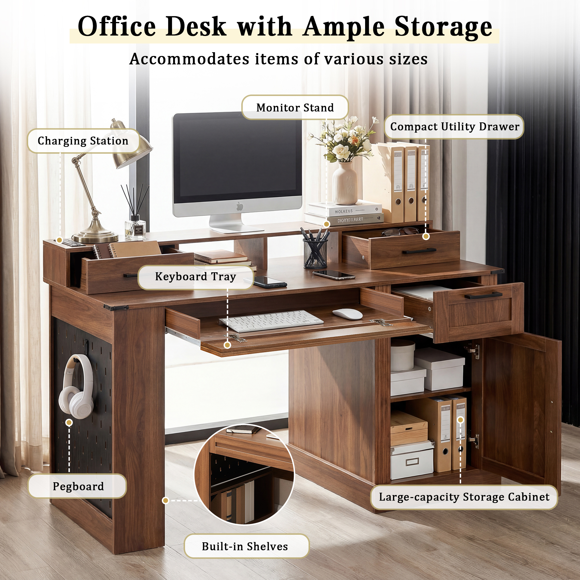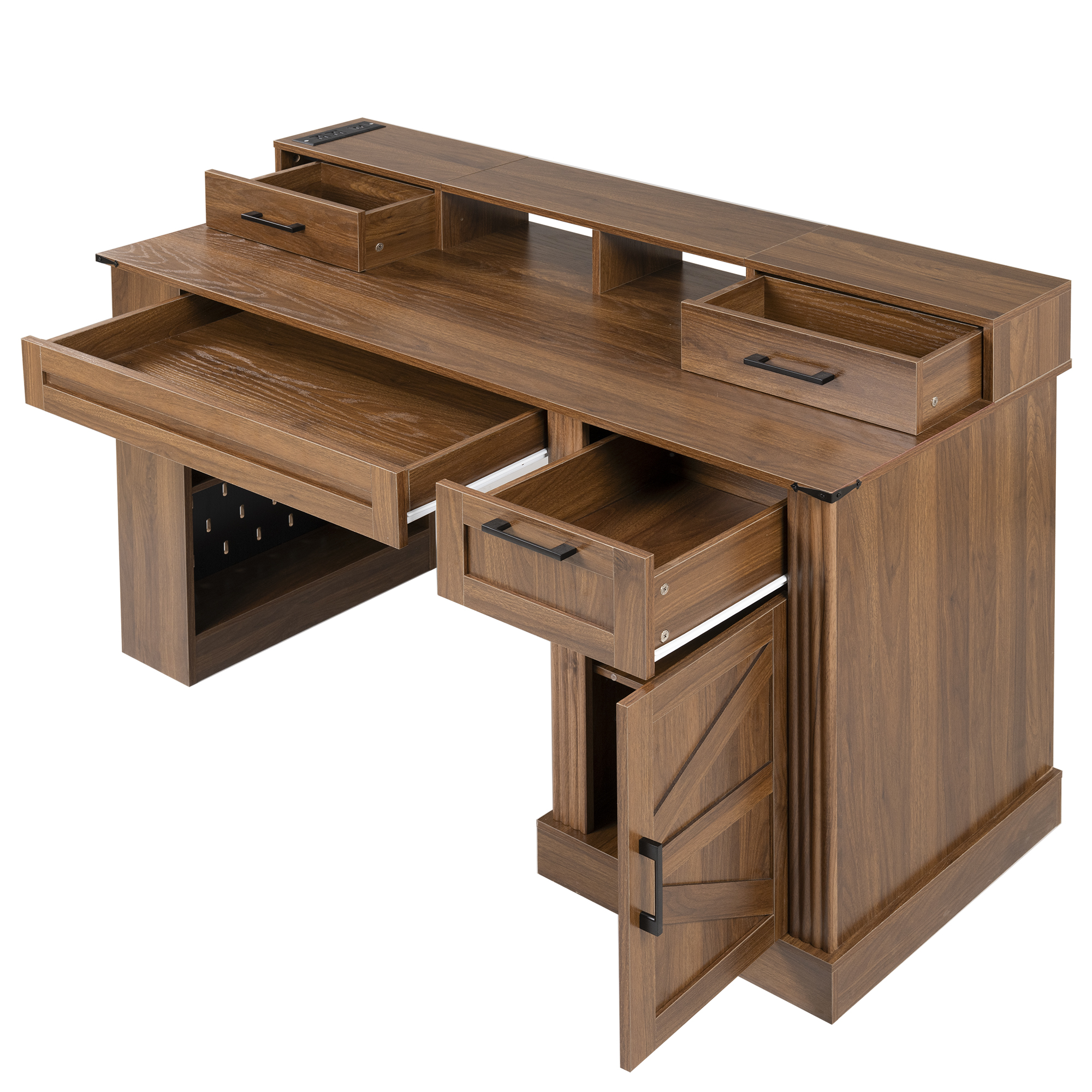 Product Name:55" Farmhouse Office Desk with Storage Cabinet & Charging Station, Barn Door Design Computer Writing Desk with Keyboard Tray, Monitor Stand & Pegboard for Study, Living Room, Home Office, Dark Walnut