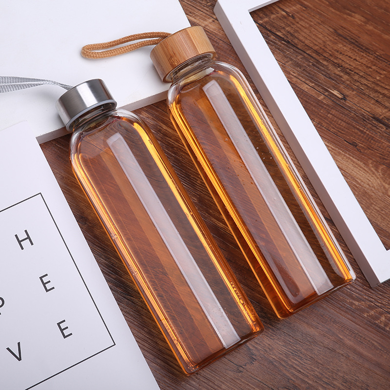 Product detailsCapacity: 550mlSize:16.3*7cmMaterial: Glass, Stainless Steel, BambooProducts include: 1 pcs Glass Water bottle