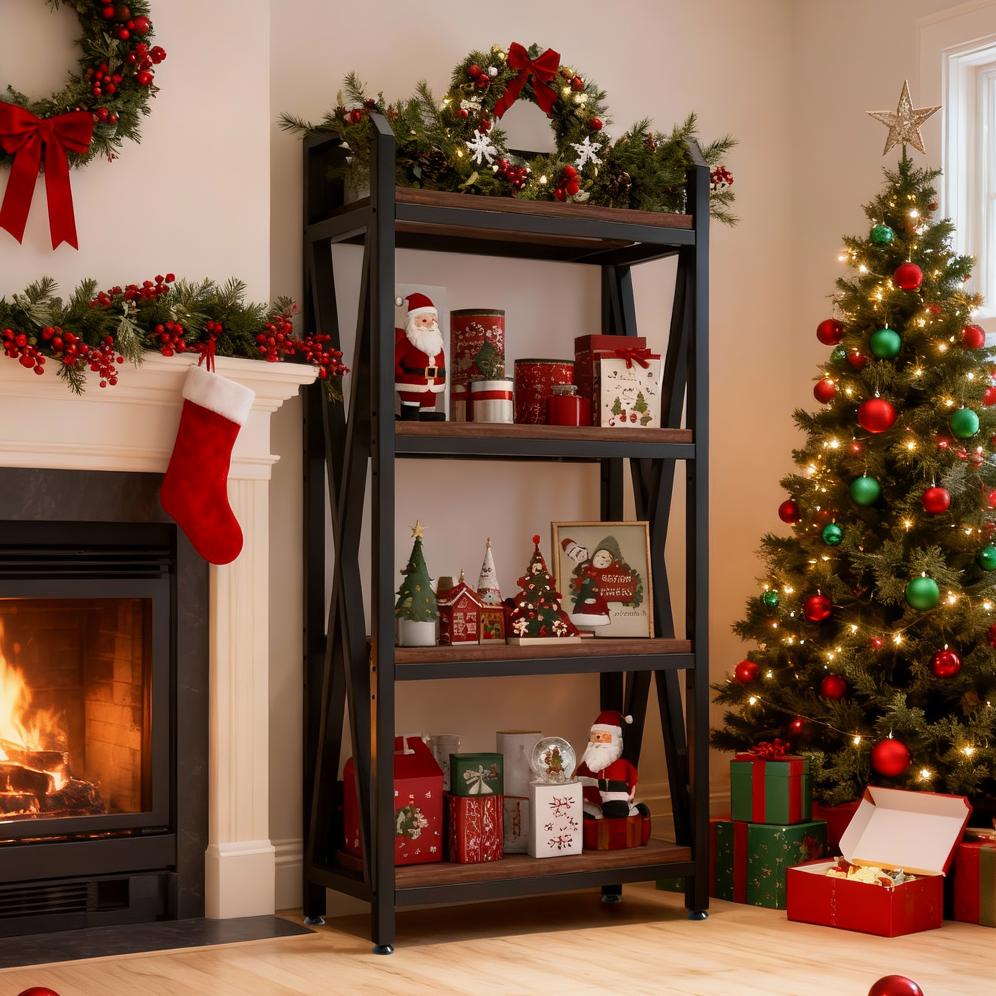 Product Name:56.30'' Bakers Rack 4-Level Storage Shelves Mental and Wooden Kitchen Shelves, Kitchen Organizers and Storage, for Garage, Pantry, Bathroom ,25.60'' Length