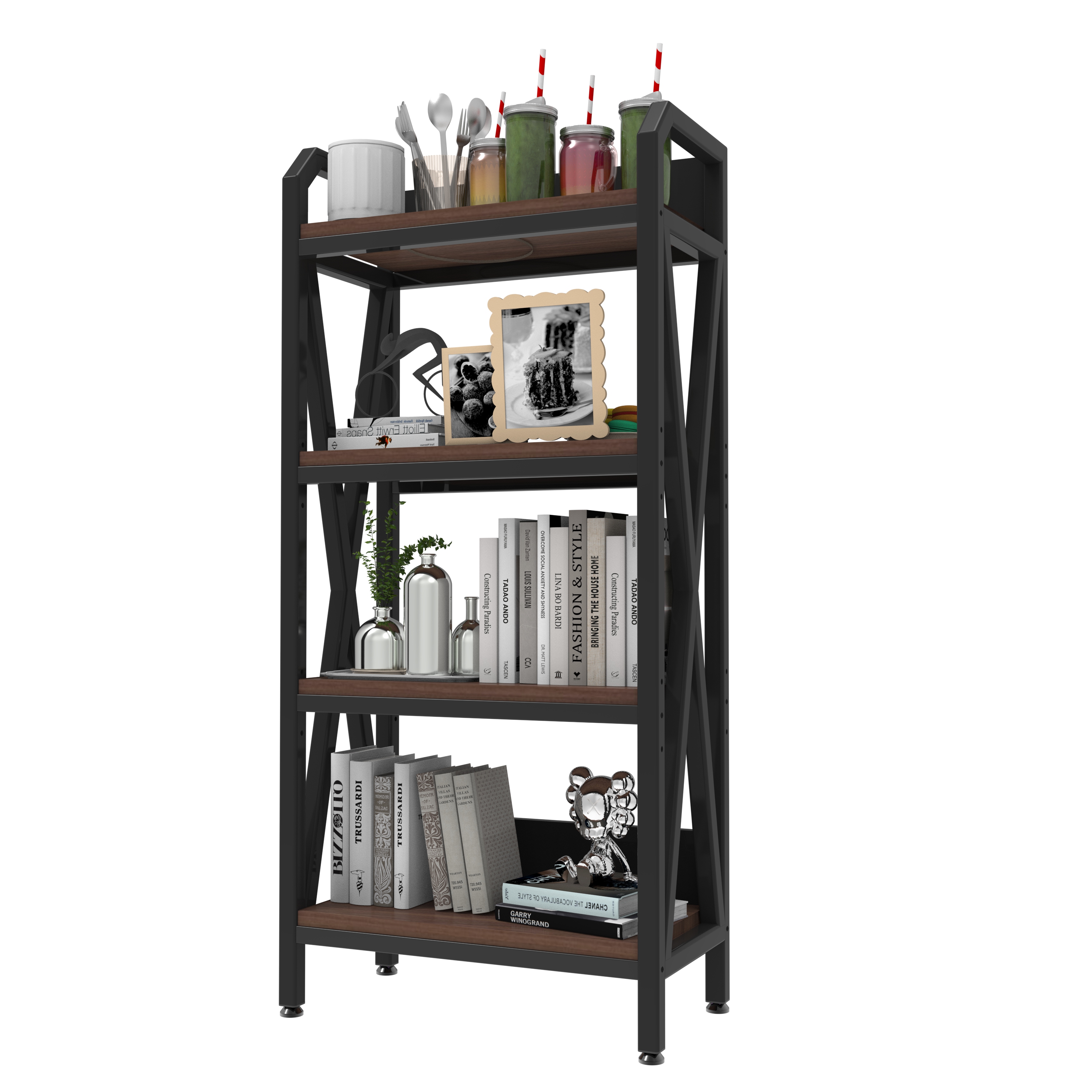 Product Name:56.30'' Bakers Rack 4-Level Storage Shelves Mental and Wooden Kitchen Shelves, Kitchen Organizers and Storage, for Garage, Pantry, Bathroom ,25.60'' Length