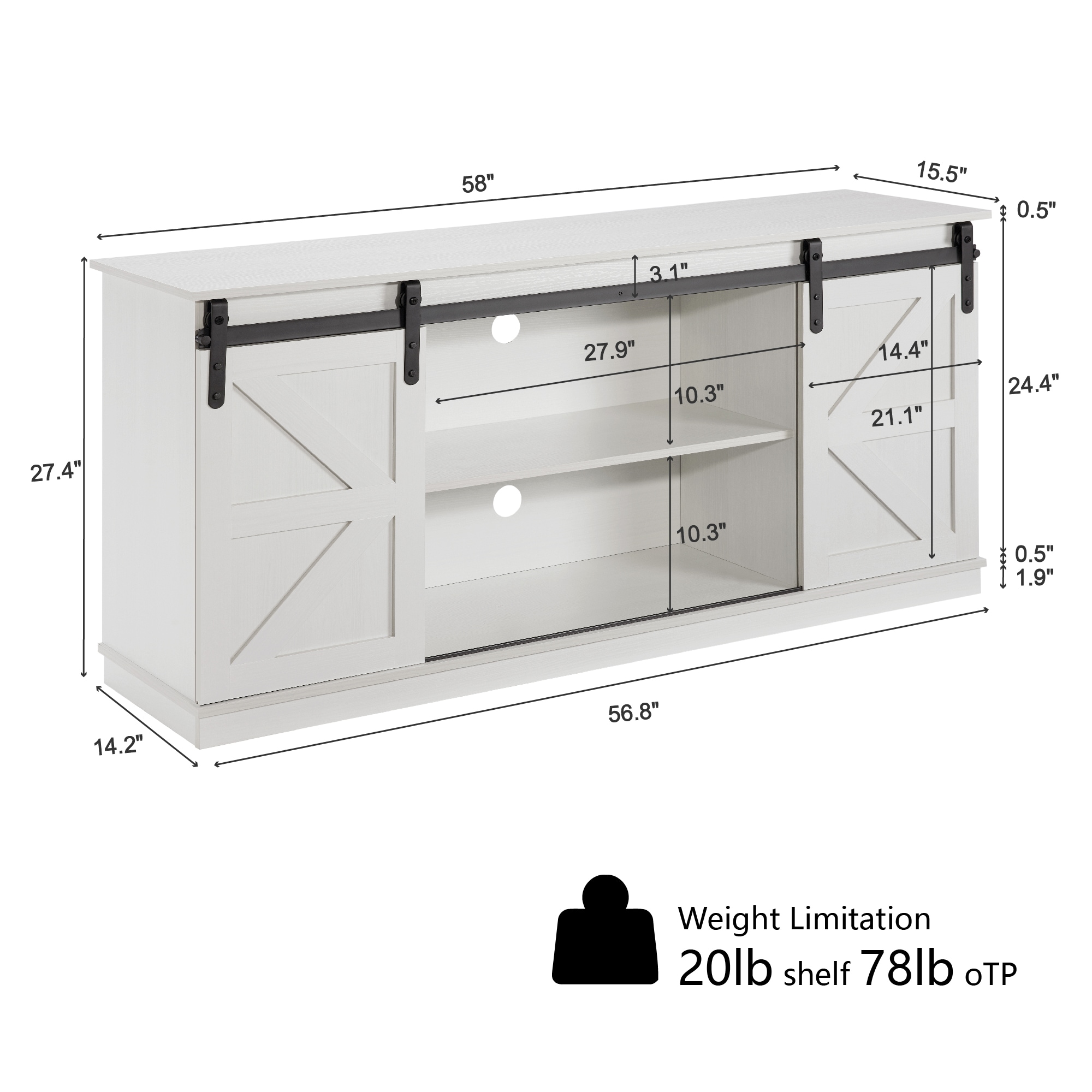 Product Name: 58" Farmhouse TV Stand and Entertainment Center for Televisions up to 65 Inchs,with Sliding Barn Doors and Storage Cabinets,White