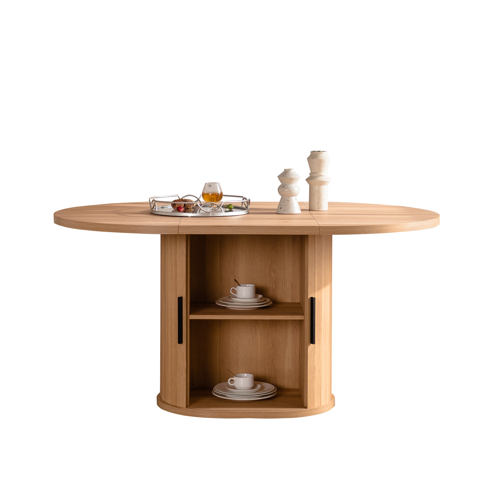Product Name:59 Inch Oval Dining Table for 4-6 Oval Table Kitchen Modern Oval Dining Room Table with 2-Layer Storage Shelf and Wood Slide Door Oval Kitchen Tables for Dining Room