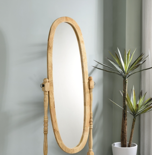 Product Name:59.25" Tall Standing Wooden Floor Mirror with Natural finish, Oval Shape