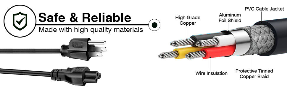 With high quality shielding and insulation, this 3 prong cord ensures safety and device protection. Certified by UL, CSA, and CE, our computer power supply cable meets rigorous safety standards, supporting high electrical loads to meet your power needs reliably.
