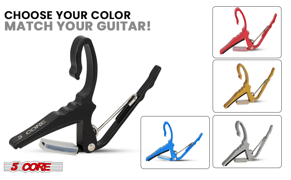 5Core Capo Acoustic Electric Guitar String Clip Banjo Mandolin Or Ukulele + 6Pcs Guitar Picks Celluloid Puas Para Guitarra + Carry Bag - CAPO AL BLU