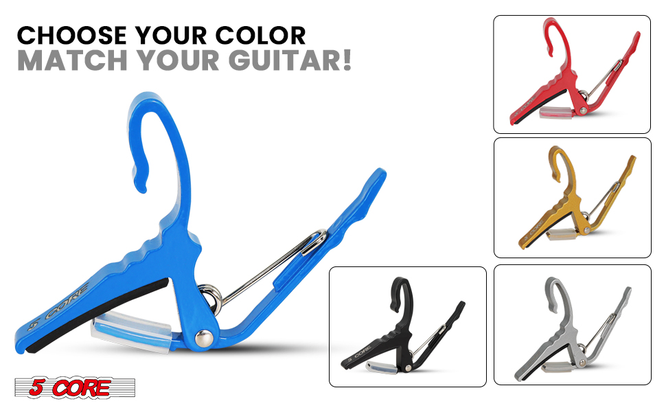 5Core Capo Acoustic Electric Guitar String Clip Banjo Mandolin Or Ukulele + 6Pcs Guitar Picks Celluloid Puas Para Guitarra + Carry Bag - CAPO AL BLU