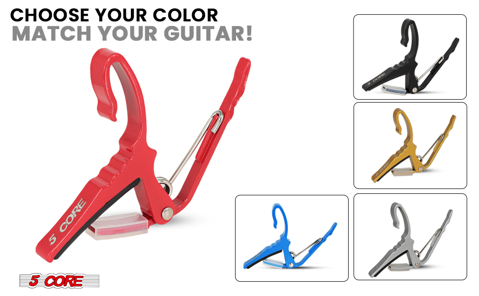 5Core Capo Acoustic Electric Guitar String Clip Banjo Mandolin Or Ukulele + 6Pcs Guitar Picks Celluloid Puas Para Guitarra + Carry Bag - CAPO AL RED