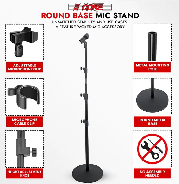 5Core Mic Stand Floor Adjustable Universal Heavy Duty Microphone