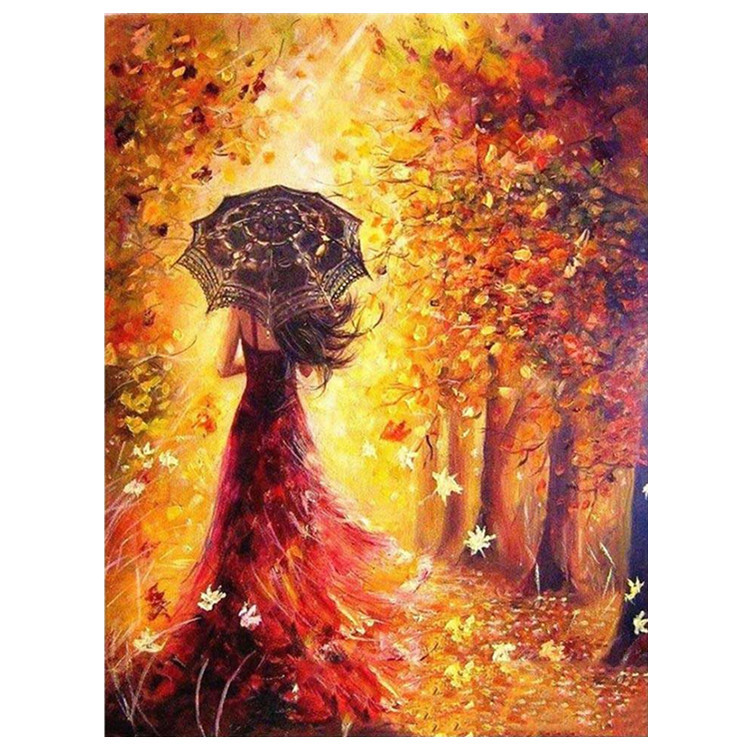 5D Autumn Girl Diamond Painting Modern Simple Landscape Tree Living Room Bedroom Cross Stitch