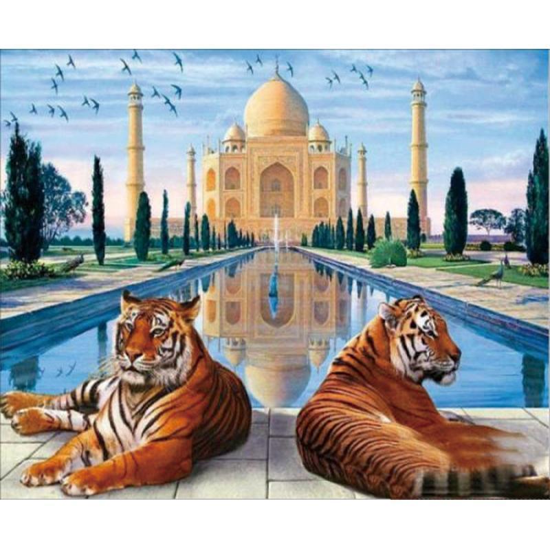 5D Diamond Painting - Tiger vor dem Taj Mahal