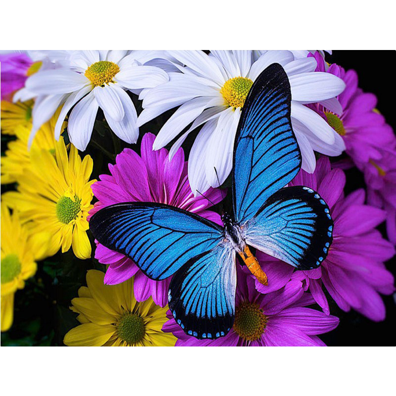 5D DIY Diamond Embroidery Blue Butterfly Flower Diamond Painting Cross Full Square Rhinestone Mosaic Decoration