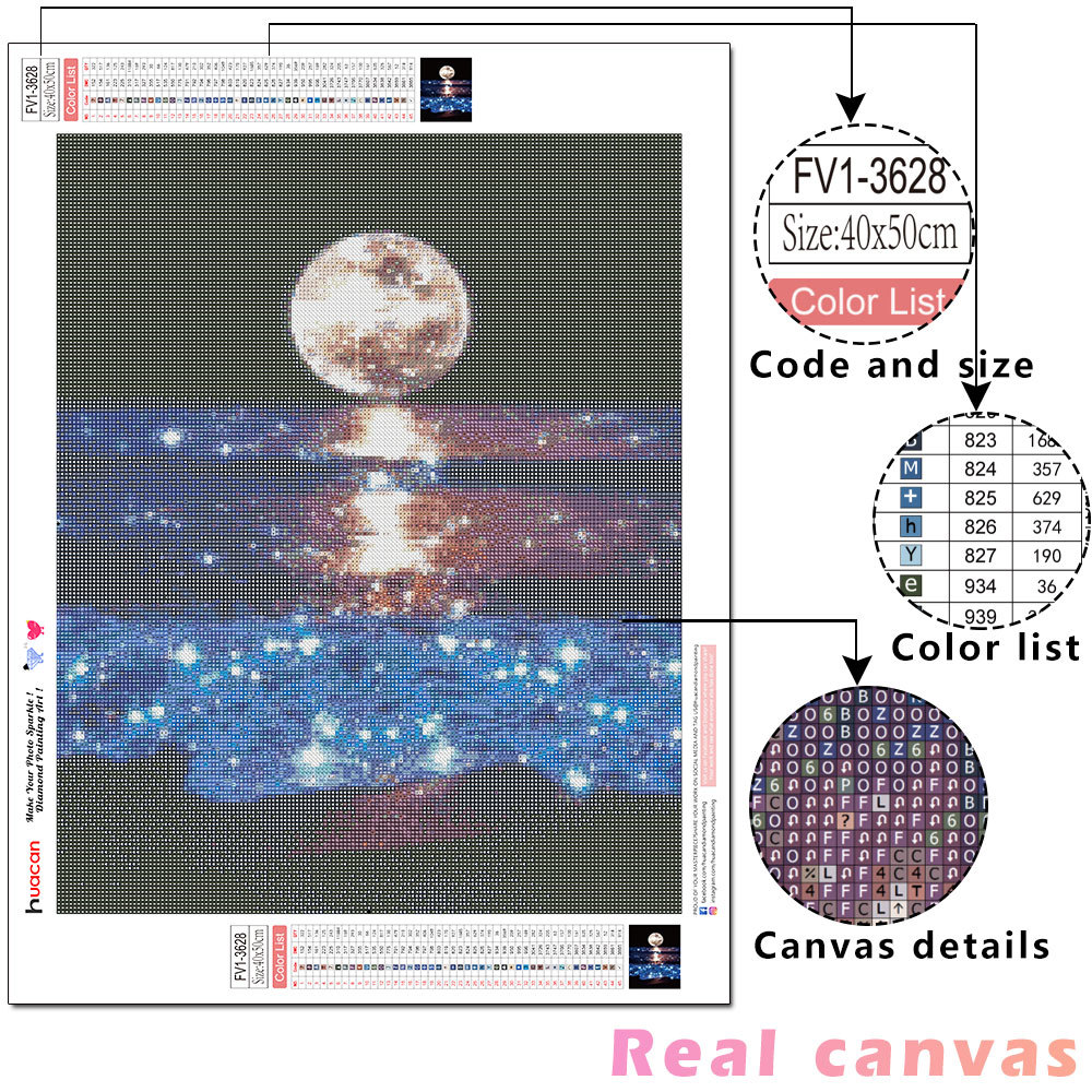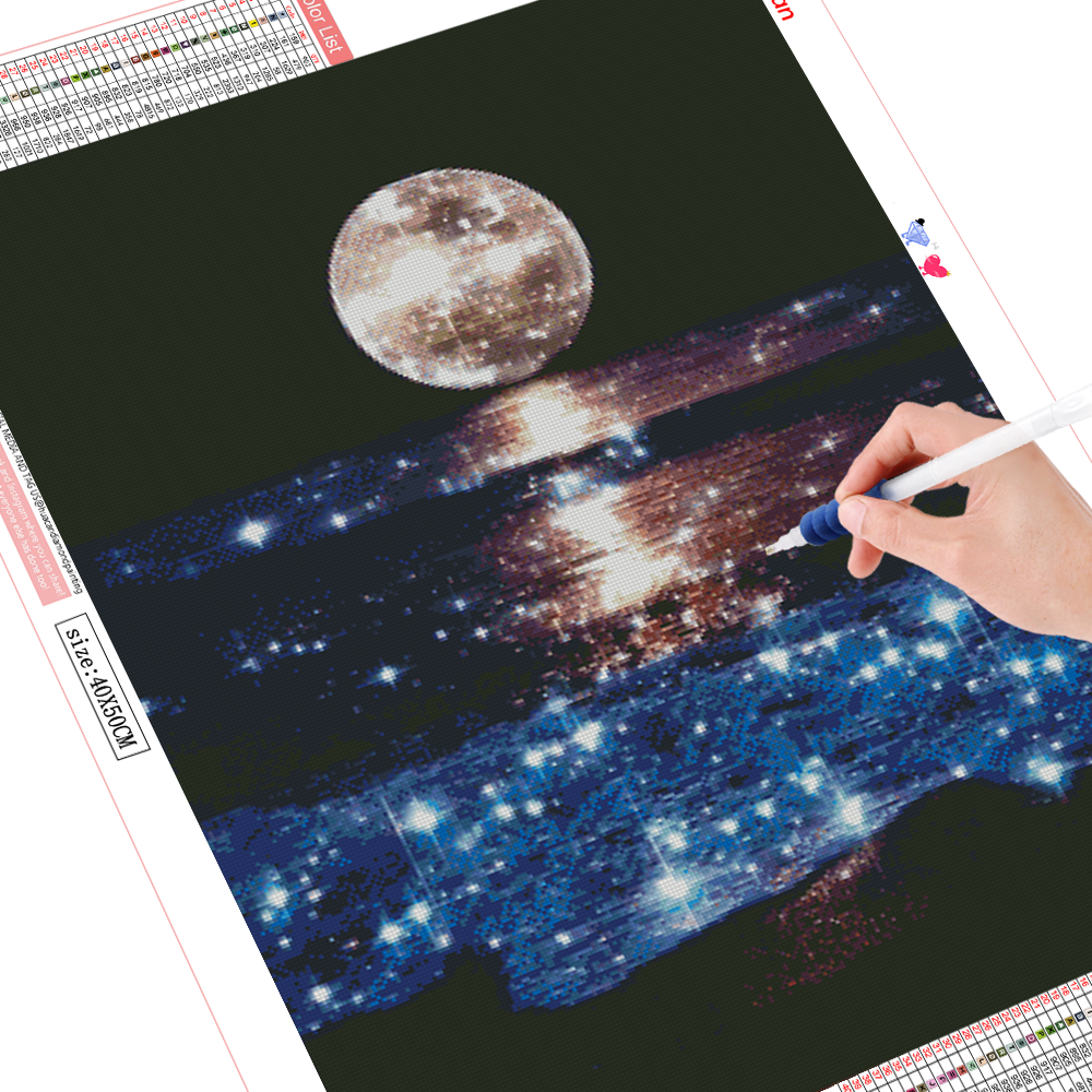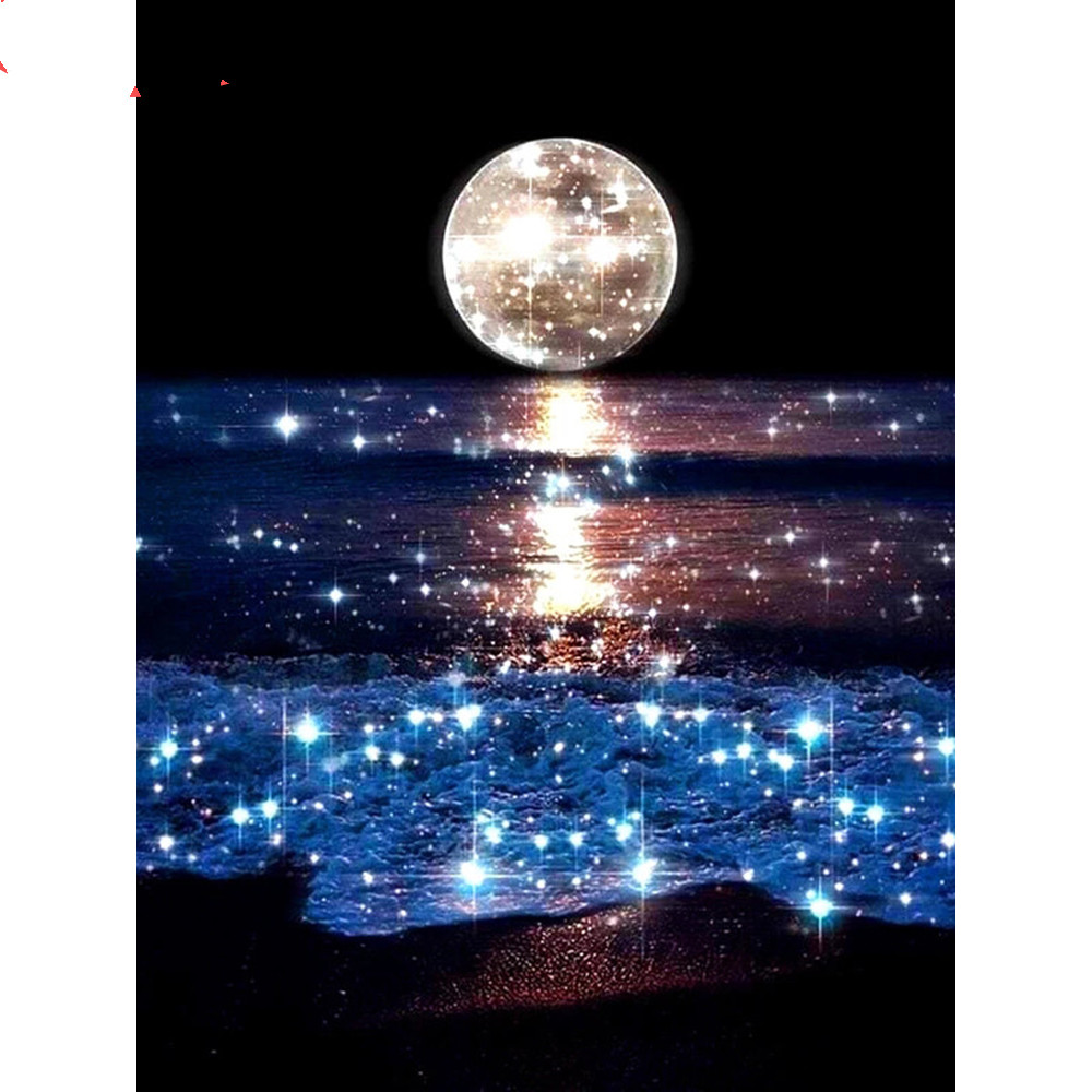5D DIY Diamond Painting Full Circle Square Landscape Moon Rhinestone Embroidery Sea Mosaic Decoration
