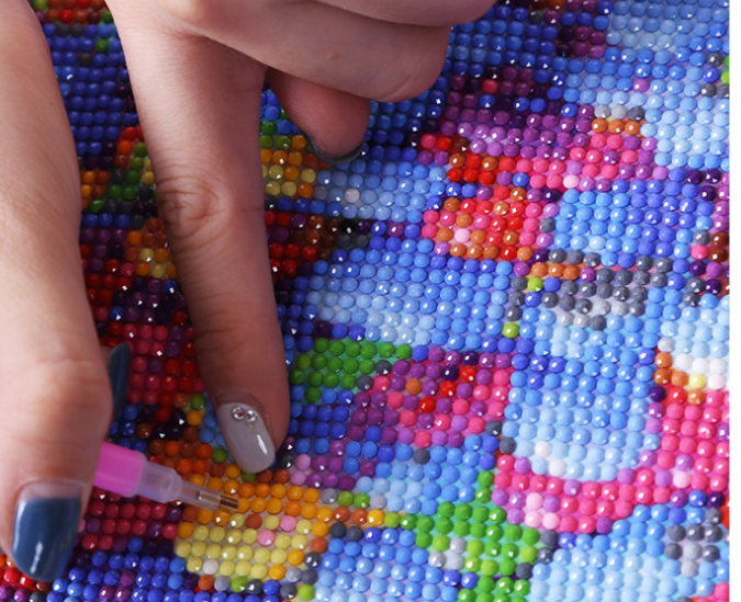 2. After all the diamonds are attached, the canvas is placed and it is not easy to fold.