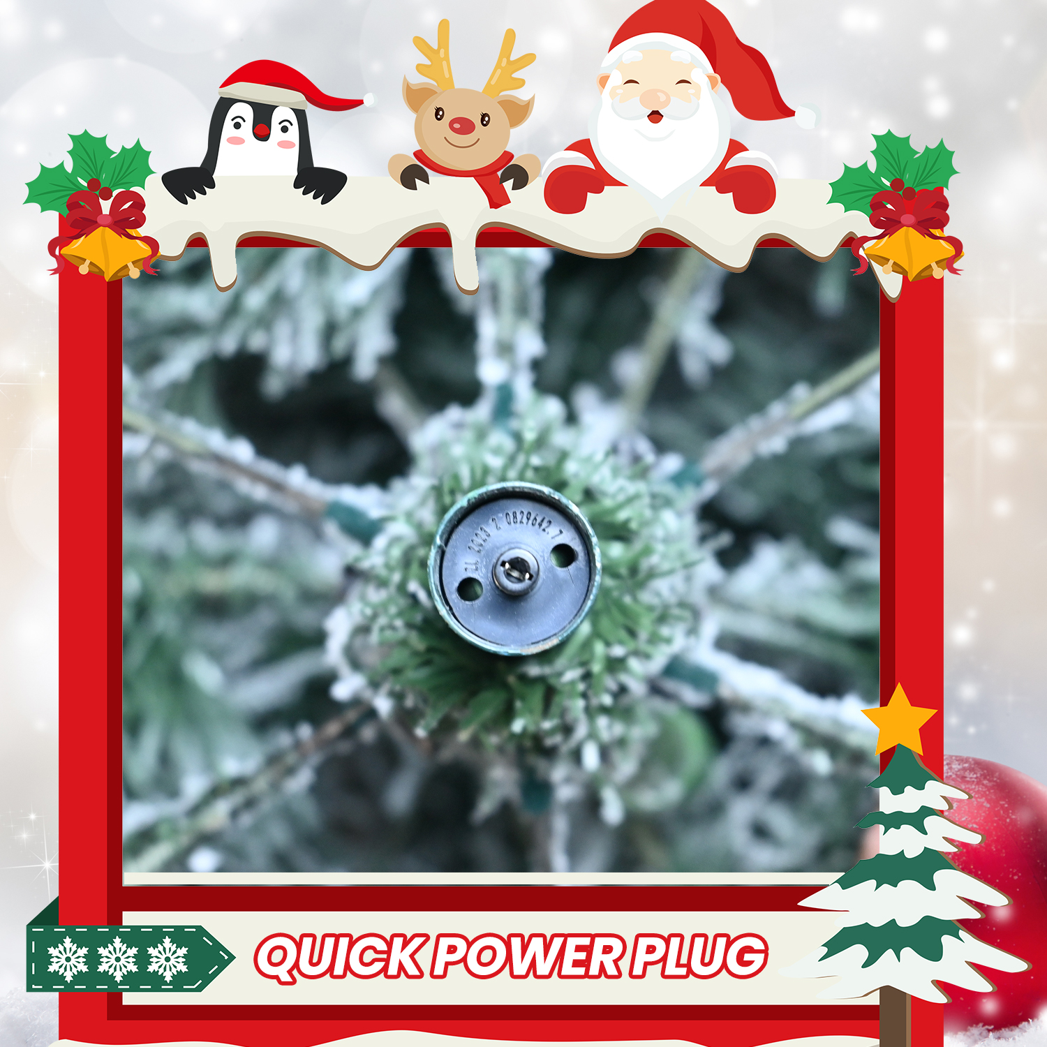 5FT 6FT 7FT 8FT Prelit Flocked Christmas Tree With Light, Snowy Pine Design, Warm White LED Lights, Hinged Branches, Metal Stand, Realistic Artificial Xmas Tree For Indoor Holiday Decoration