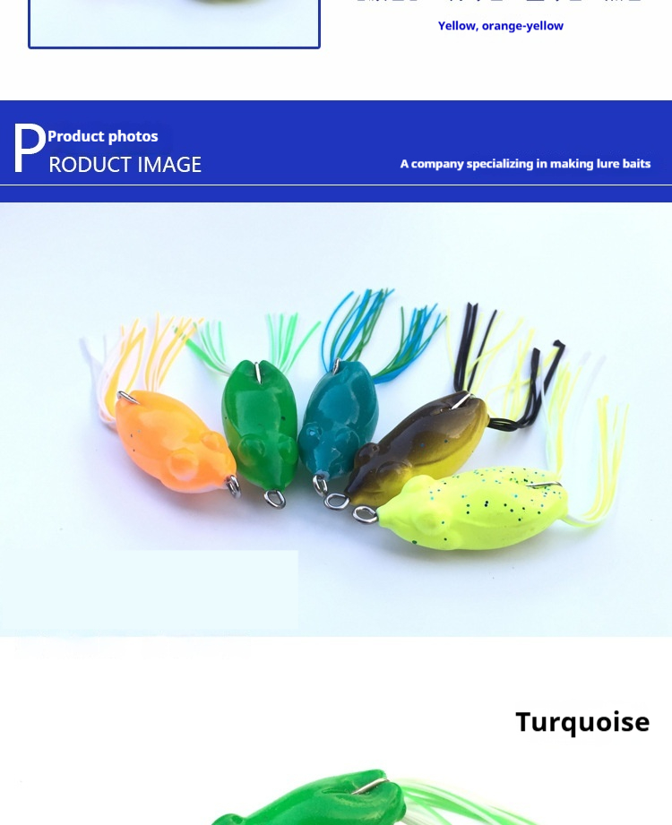 Product information:Color: Orange, yellow, black, light green Material: PVC Specifications: 4 cm, 5 g Category: Fishing lure