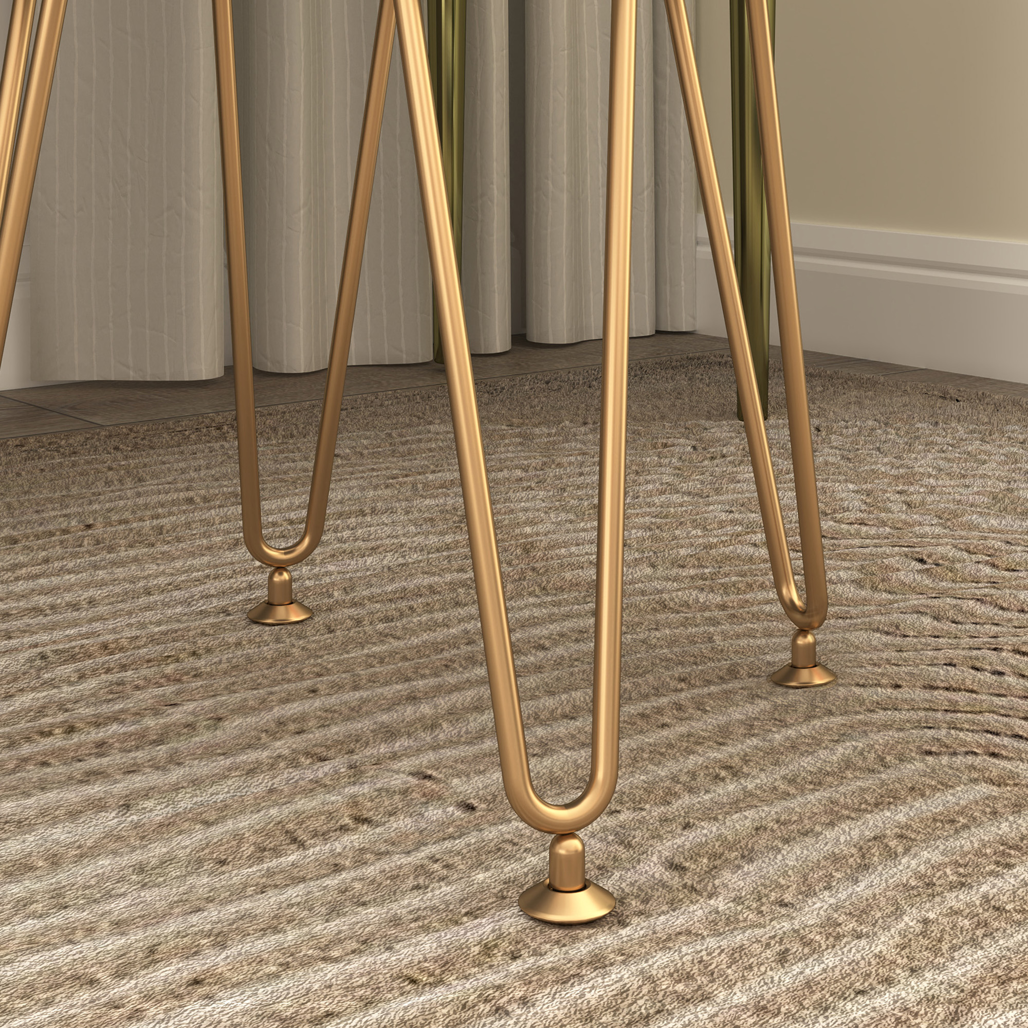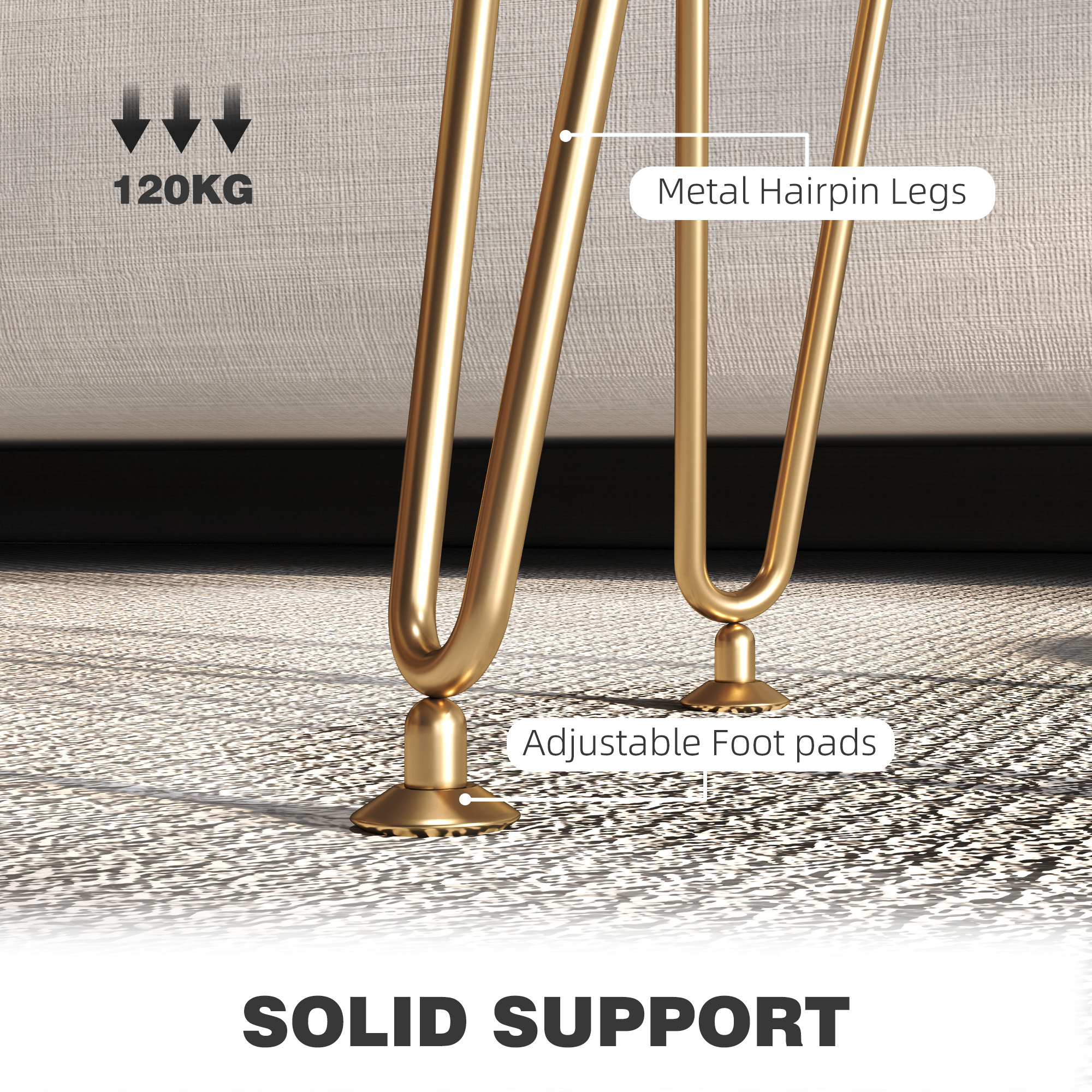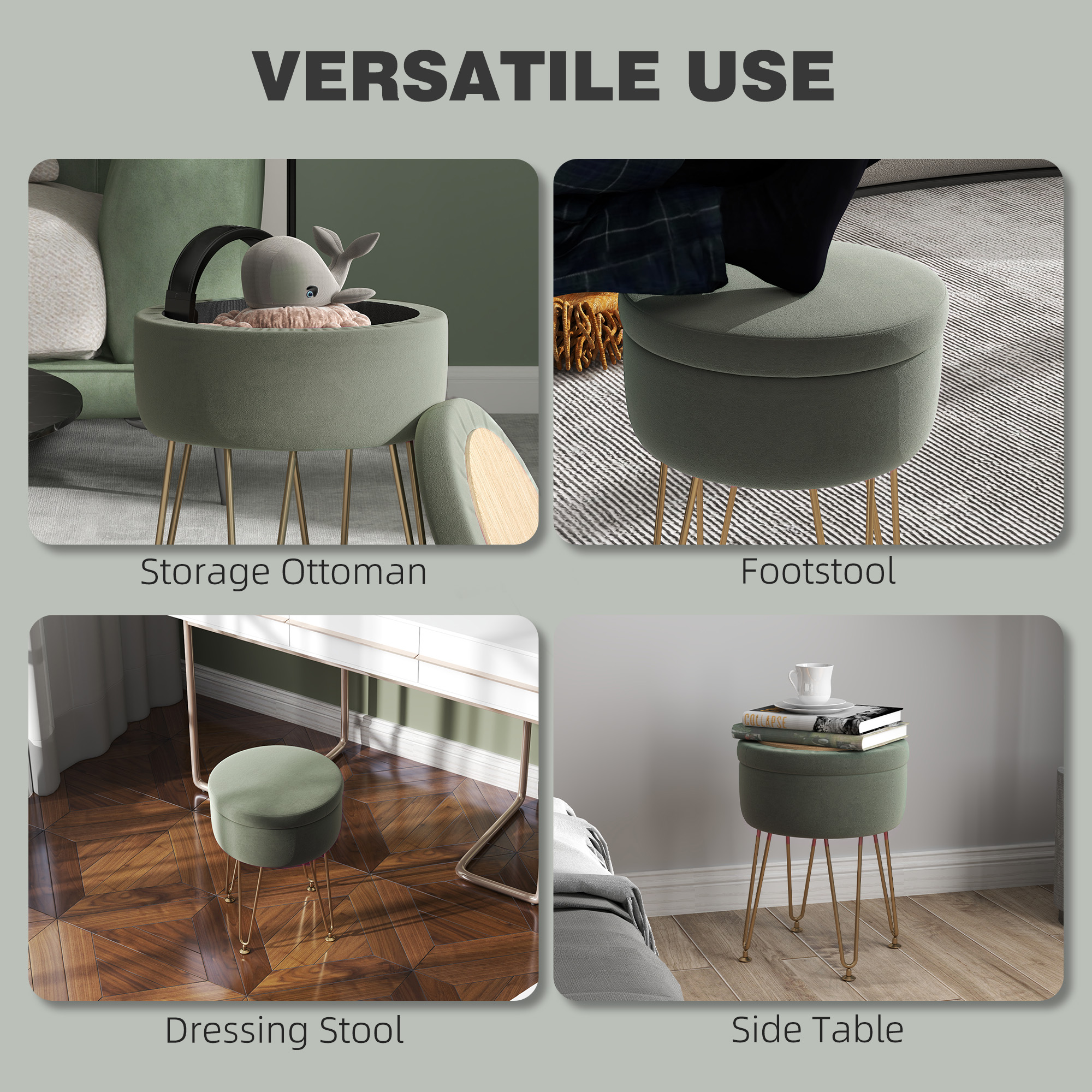 Luxurious functionality in the home with this ottoman. Inside it has a 5L storage space, making room for plenty of smaller items. Wrapped in velvet-feel upholstery this is a soft and beautiful piece which looks great wherever you stand it, complete with gold coloured metal hairpin legs for strong support.