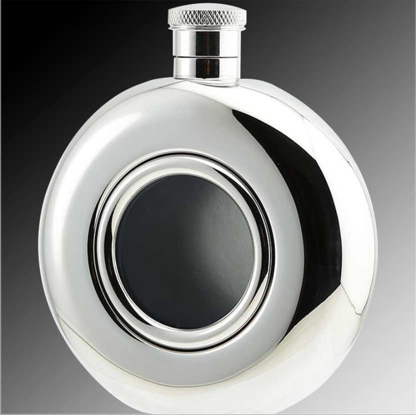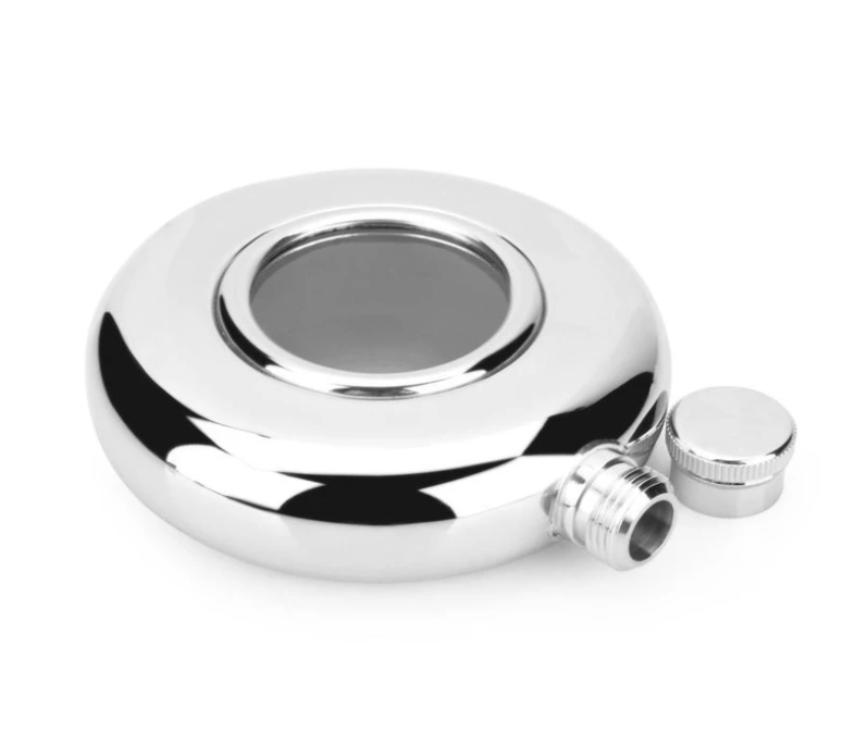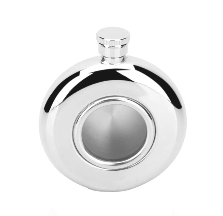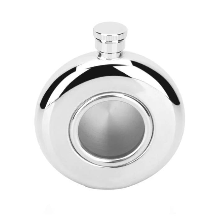 The body is round with plexiglass in the middle. It is transparent and can be seen inside.