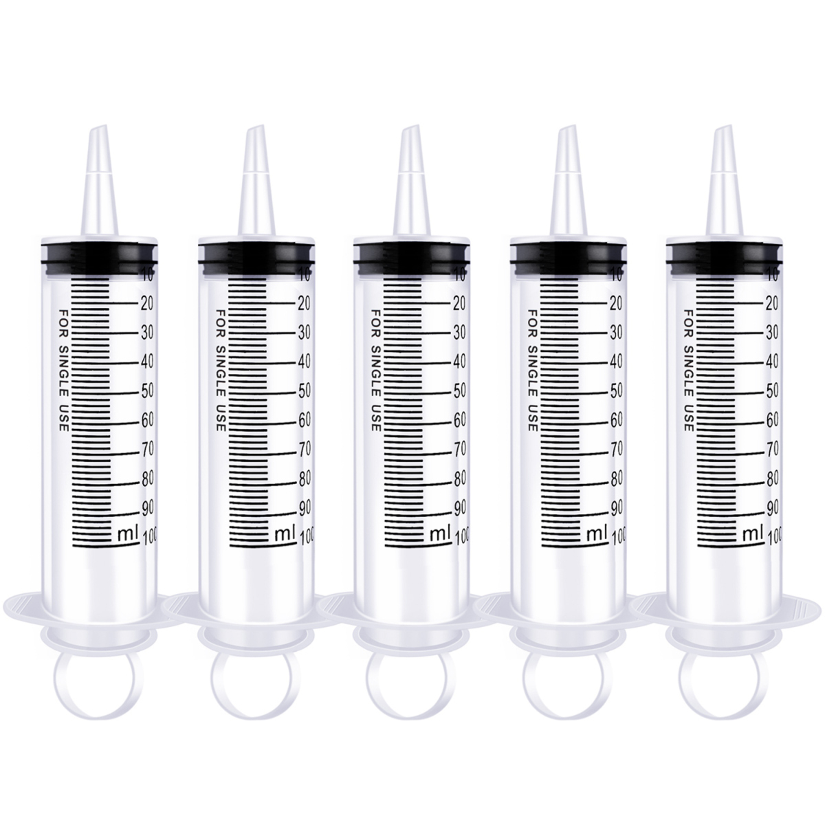 5Packs 100ml Syringe for Industrial, Scientific, Measuring, Watering, Pet Feeding, Liquid Refilling and Dispensing