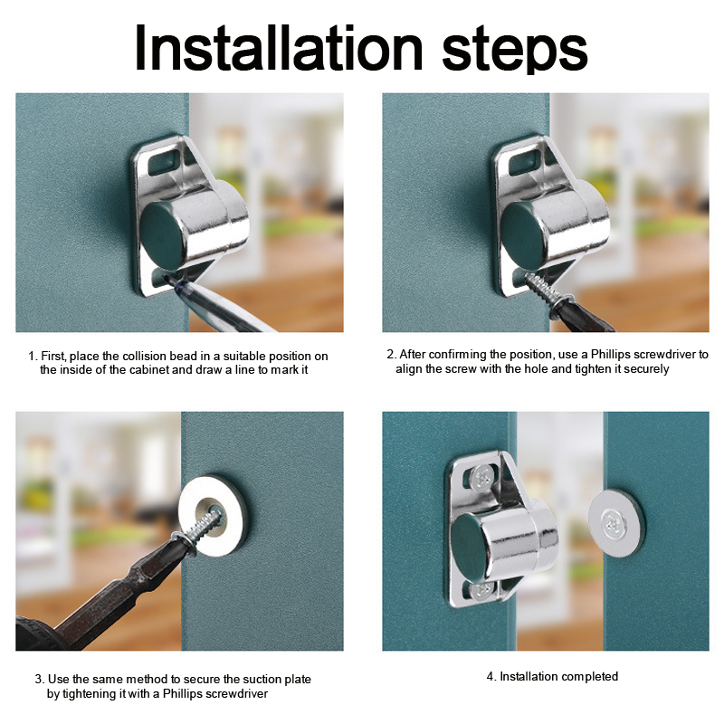 2. [Material and Features] All-metal magnetic door locks, high-quality electronic coating on the metal base of the cabinet door locks, ensuring a good metal texture, corrosion-resistant and crack-resistant, more durable and long-lasting than plastic