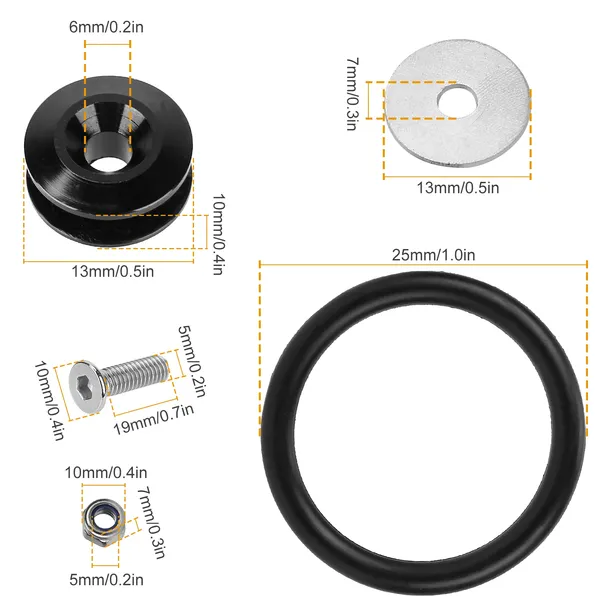 **Dimensions*:Reinforcing Ring:13x10mm/0.5x0.4in;O-Ring:25mm/1.0in;Nuts:10mm/0.4in;Screw:10x19mm/0.4x0.7in;Shim:13mm/0.5in