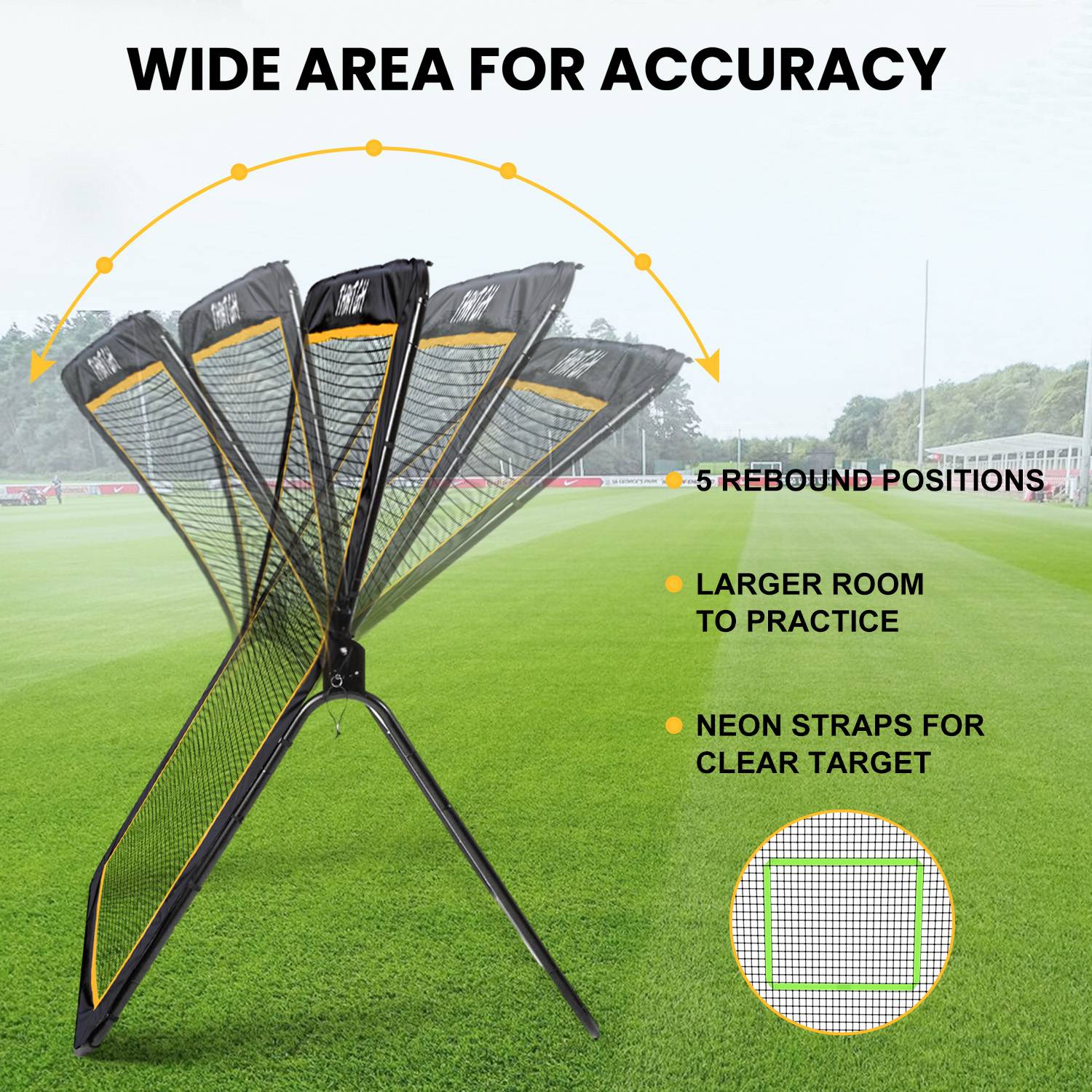 Unmatched Size: Its 7*5 FT size gives you over 35 square feet of superior return surface. Larger target area ensures the lacrosse rebound trainer provides the user with a realistic ricochet that creates a challenging and intense training drill.
