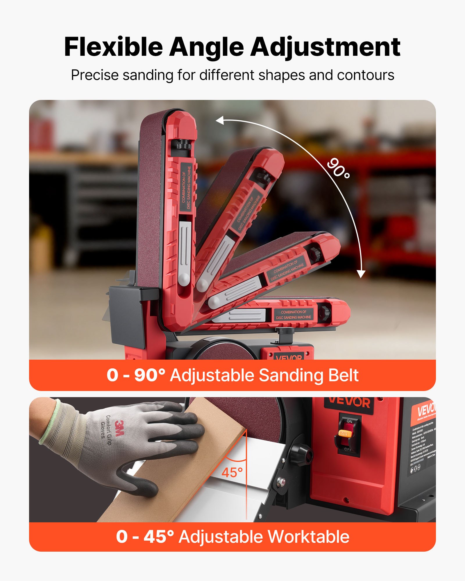 Multi-Angle Sanding: The sanding belt can be adjusted from 0 to 90°, allowing for both horizontal and vertical sanding, providing the flexibility to tackle sanding tasks with precision for smooth, uniform finishes