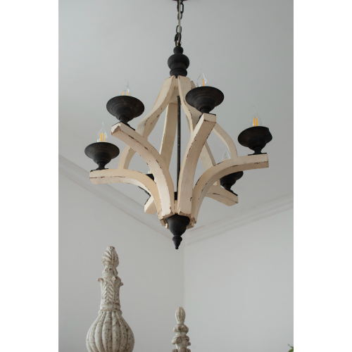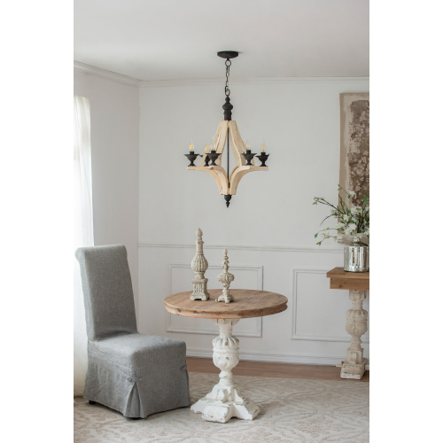 6 - Light Wood Chandelier With Adjustable Chain For Kitchen, Dining Hall Entrance, Bulb Not Included