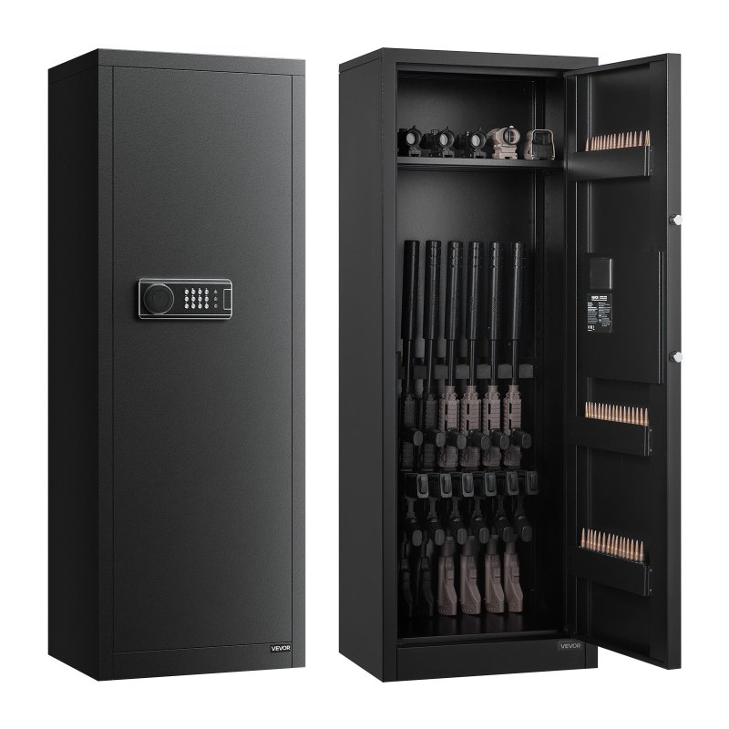Anti-pry Heavy-duty Cabinet: The rifle safe features a full steel construction with a 0.04 in / 1.1 mm thick anti-pry door plate, combined with 2 solid locking bolts to resist prying and damage. Pre-drilled mounting holes on the back allow for wall mounting
