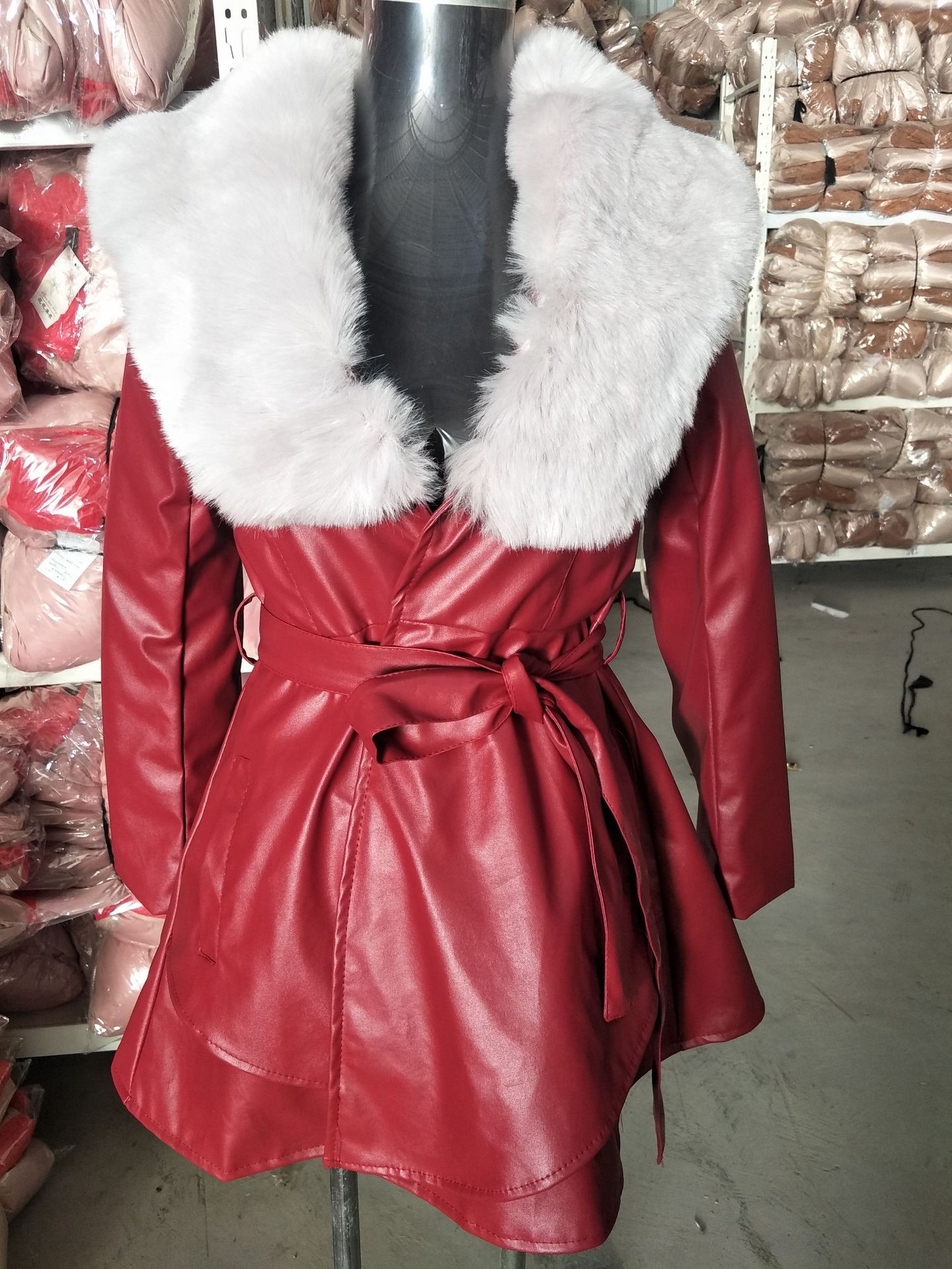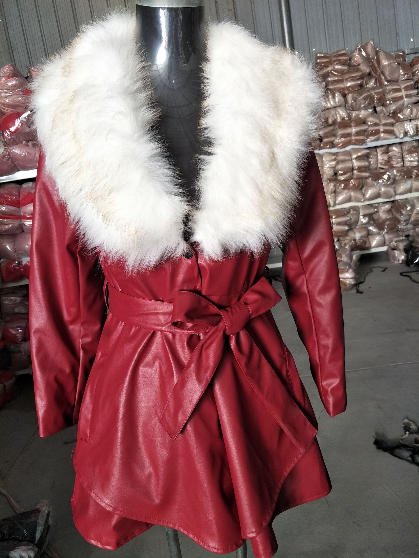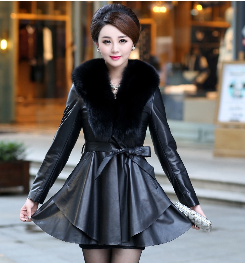 6-color Leather Imitation Fox Fur Collar Women's Mid-length Coat