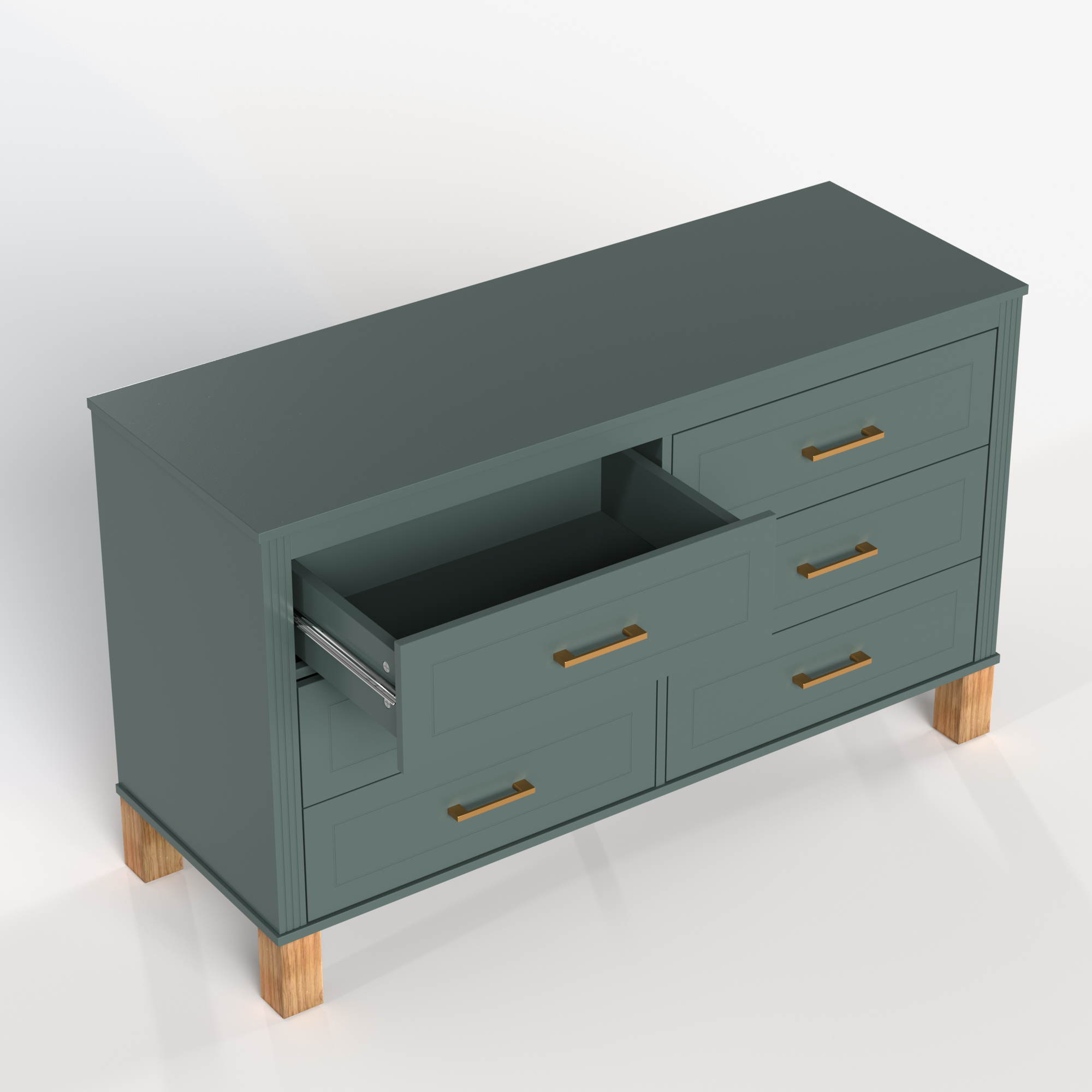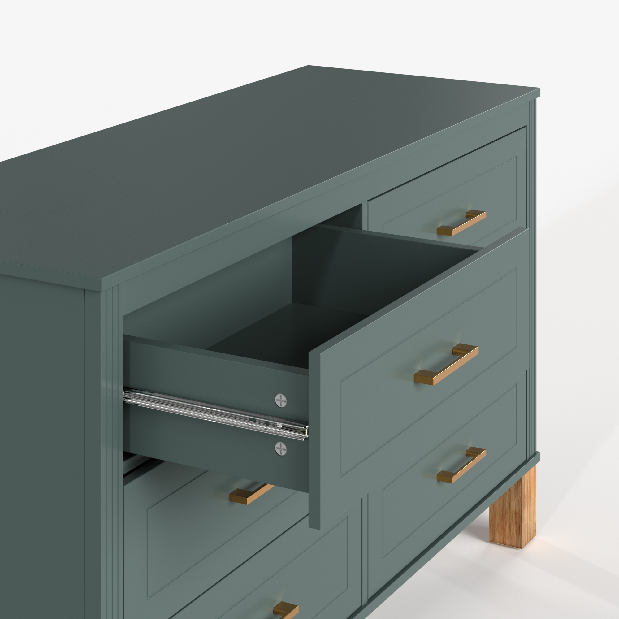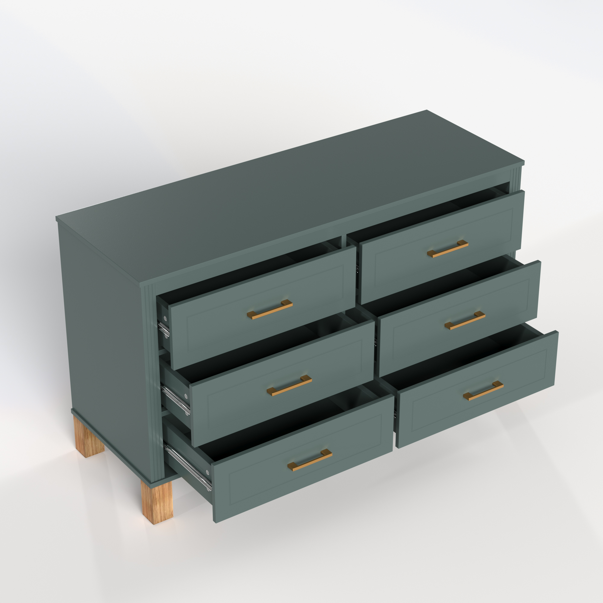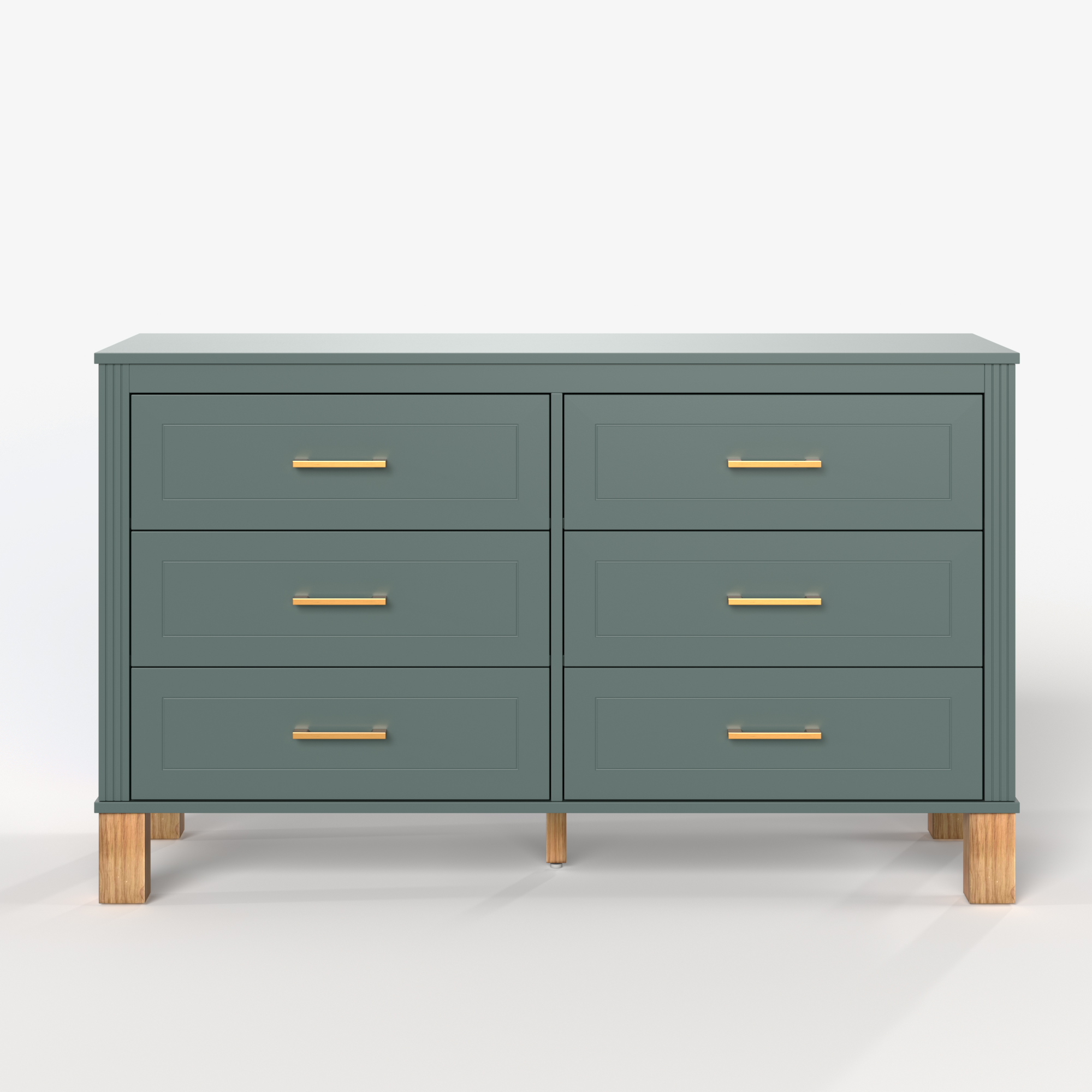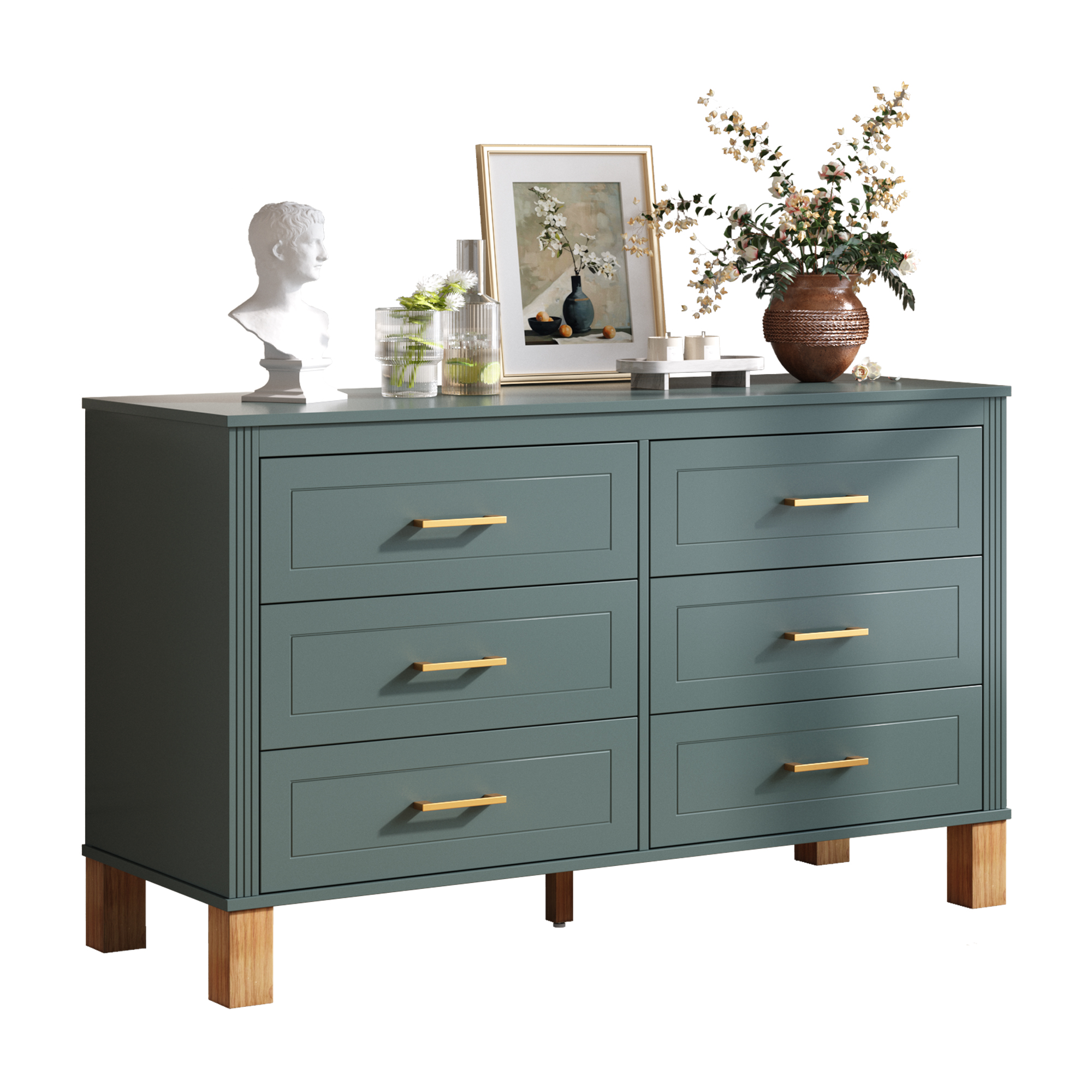 Product Name:6-Drawer Double Dresser in Green, Modern Storage Cabinet with Metal Handles & Solid Wood Legs, Dresser Drawer Organizer for Kids Bedroom, Heavy-Duty Wooden Dresser with Pre-Installed