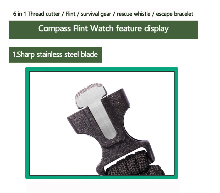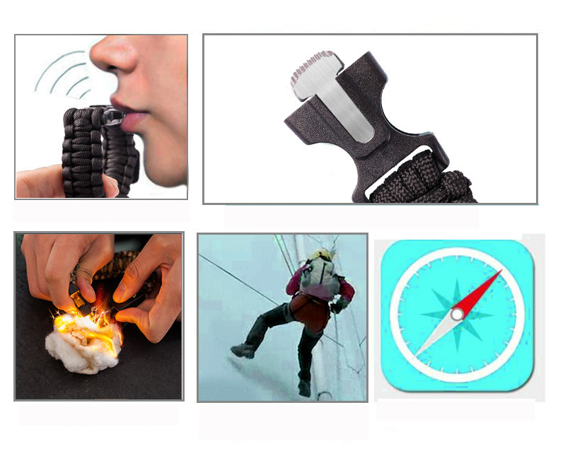 6 en 1 tácticos al aire libre EDC supervivencia ajustable pulsera brújula rescate paracord camping equipment Herramientas