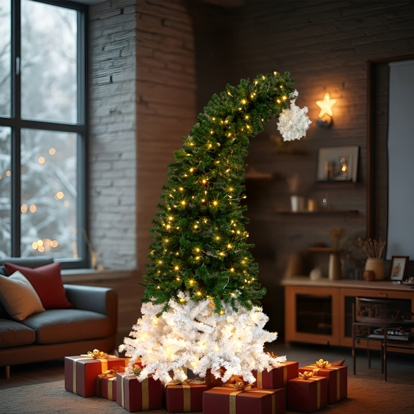 Step into a winter wonderland with the Santa Hat Style Pre-lit Christmas Tree—a delightful blend of holiday charm and festive design. This unique hat style tree combines the traditional appeal of a lush pine tree with the playful and joyous presence of a large santa hat. Ideal for creating a warm, inviting atmosphere, this tree will captivate guests in any setting, whether at home, in the office, or as a stunning centerpiece in your store or party venue.