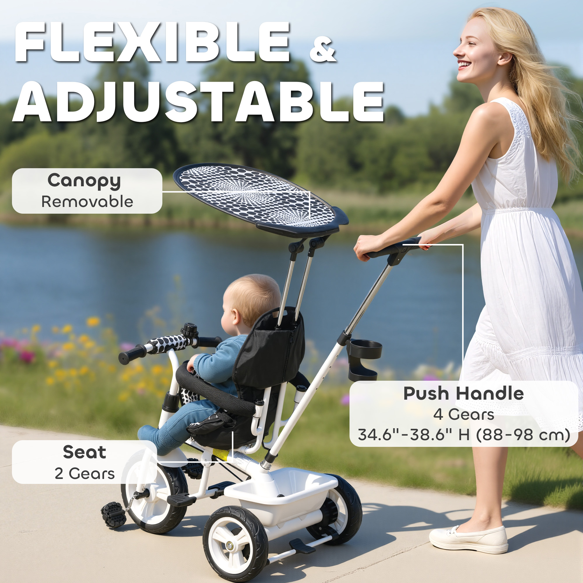 Unleash endless fun and adventure with the Qaba kids trike! This toddler trike transforms from a toddler push bike to a bike stroller in a breeze, offering versatility for your growing child. It is suitable for little explorers, it's a great baby bike to foster independence while ensuring a safe ride. Dive into the joy of mobility and watch your little baby pedal away on their new favourite toddler tricycle.