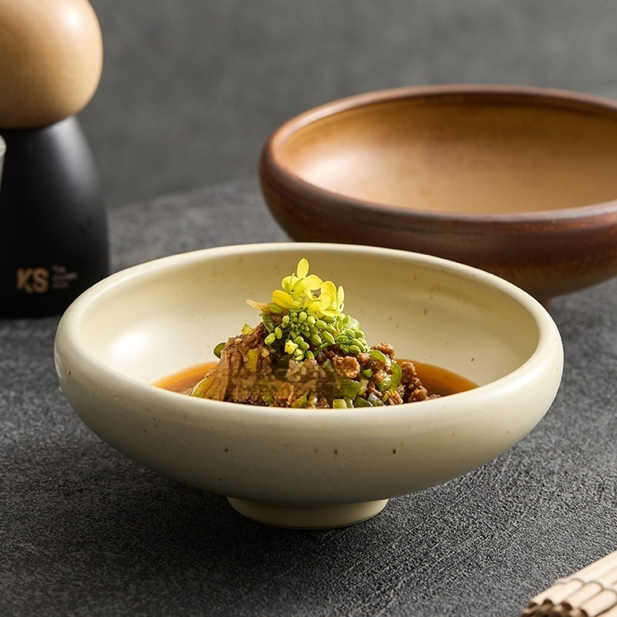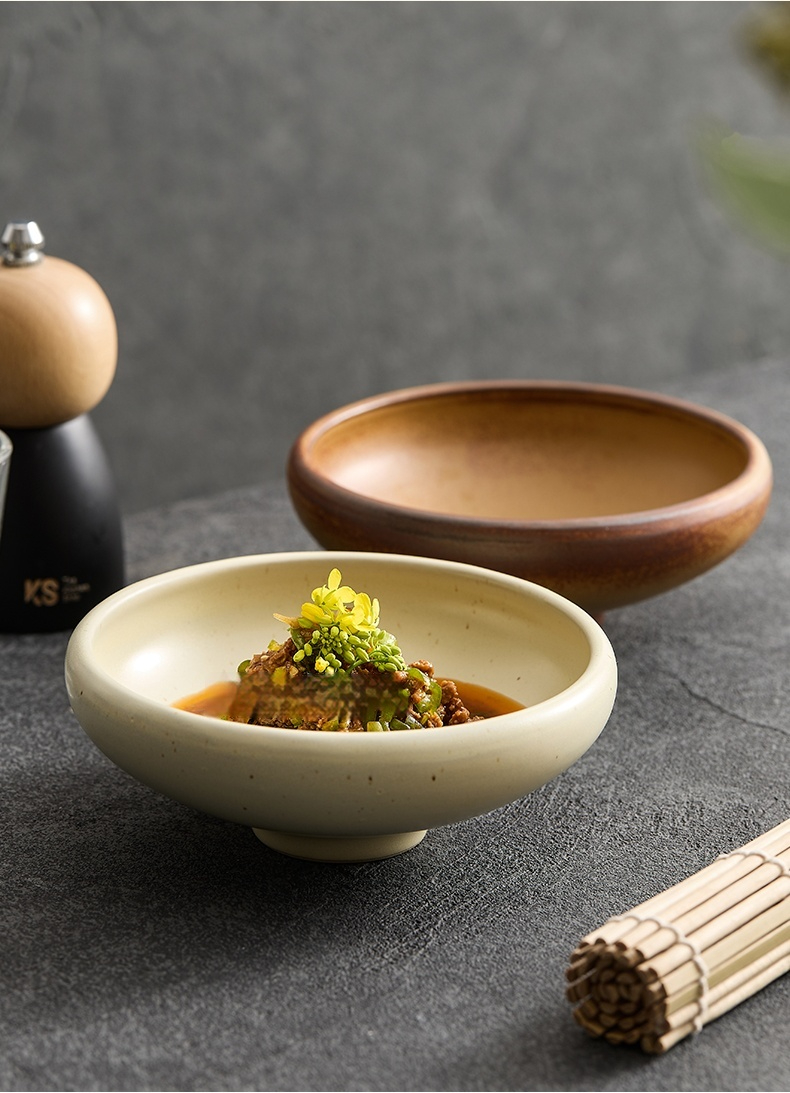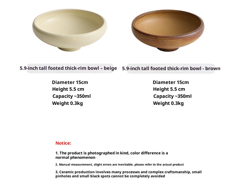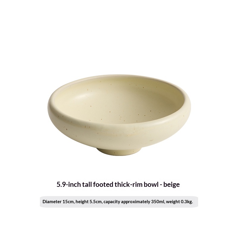 Colors: 5.9-inch tall-footed bowl with thick rim—brown, 5.9-inch tall-footed bowl with thick rim—beige, 5.9-inch sesame-glazed original-color bowl