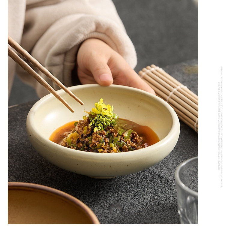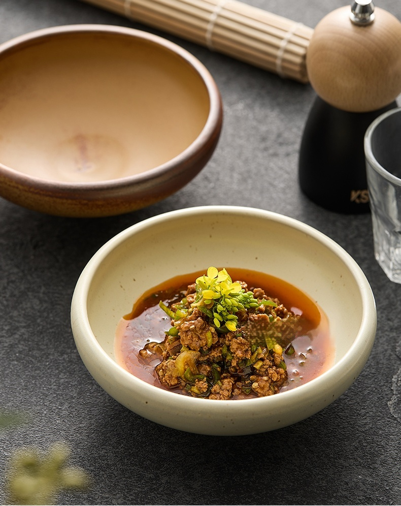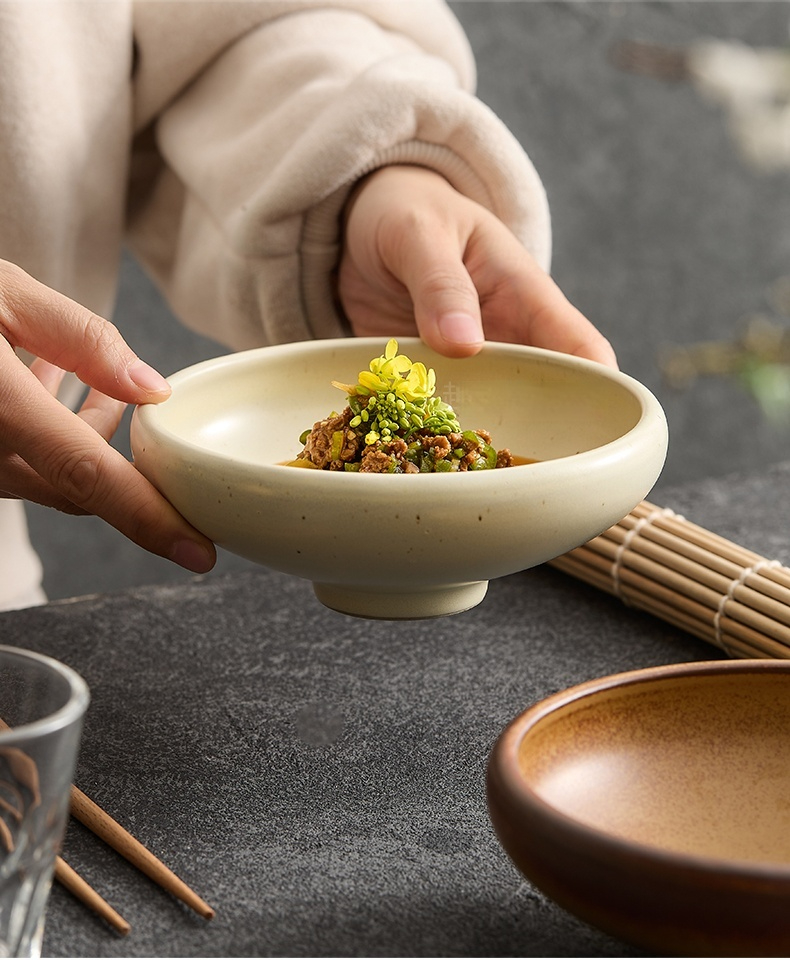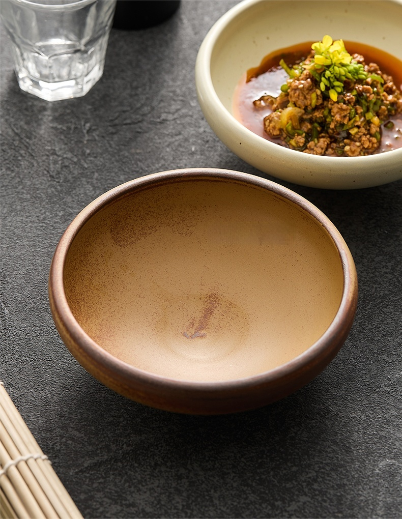 Colors: 5.9-inch tall-footed bowl with thick rim—brown, 5.9-inch tall-footed bowl with thick rim—beige, 5.9-inch sesame-glazed original-color bowl