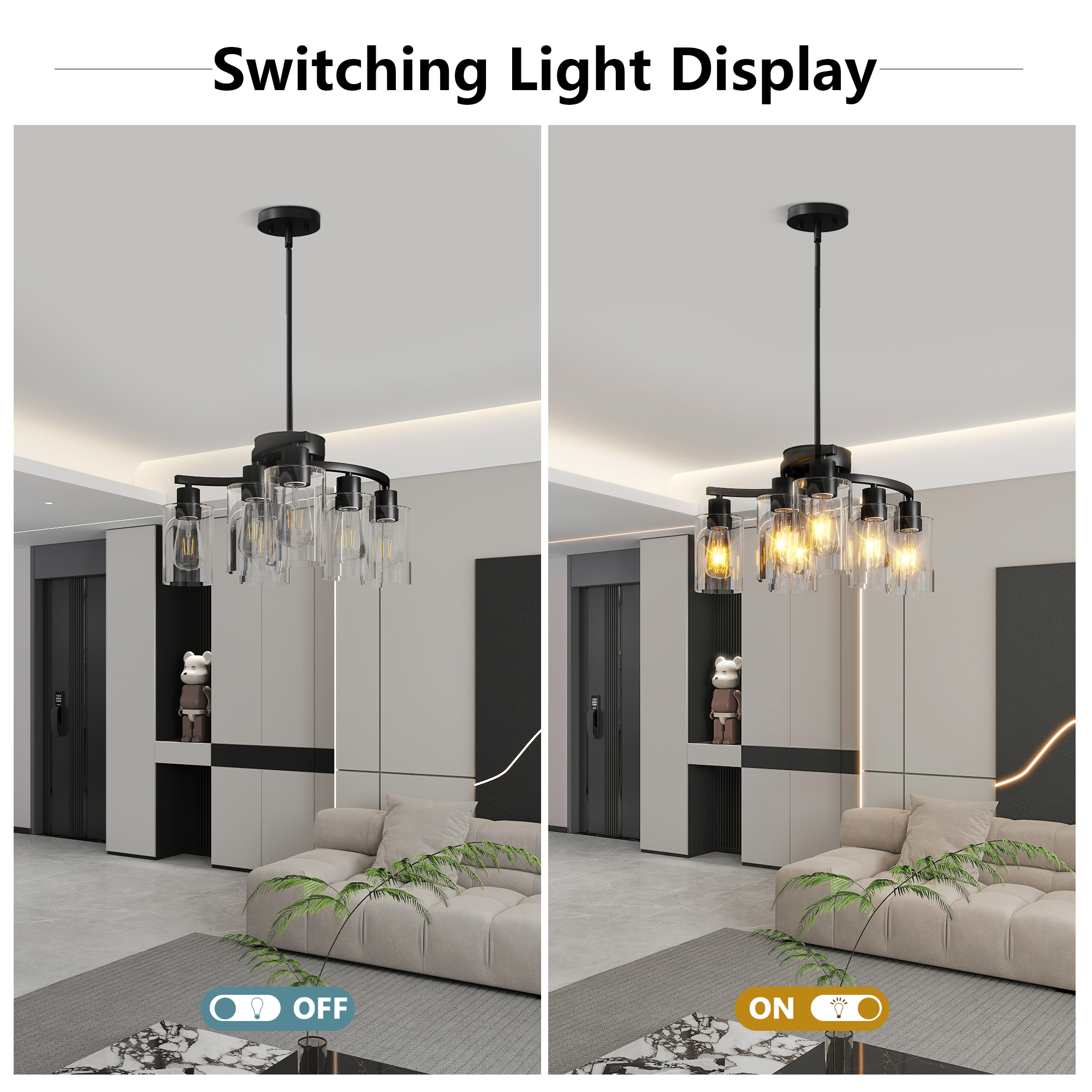 - Modern Style: Glass chandelier has 3 arms that radiate outward from the central arc, presenting a simple but not simple beauty. The body of the black light fixture is made of high quality matte black metal with a fine polished surface. The clear glass shade not only ensures the soft scattering of light, but also complements the cold and hard texture of the metal, making the whole modern chandelier both powerful and delicate. The downward-facing glass shade does not easily accumulate dust and is