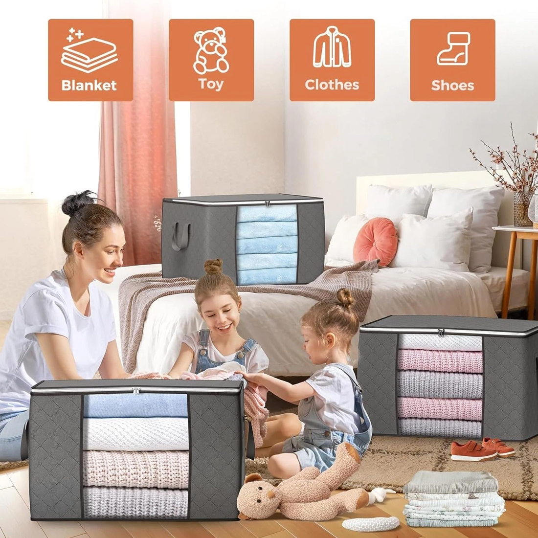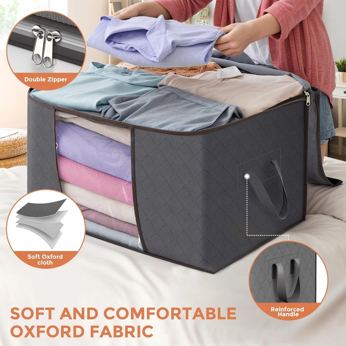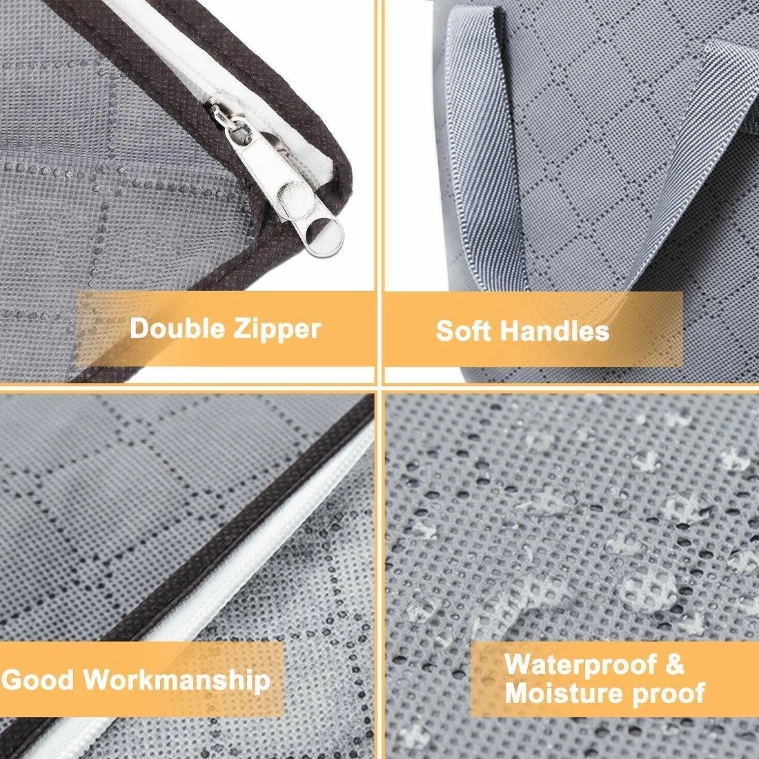 Sturdy & Firmly: The handles look durable for clothing or blanket kind of storage that fills up even the entire bag. Stainless steel two-way zippers that allow it to easily slide along the closure when in use, regardless of how full the bag is