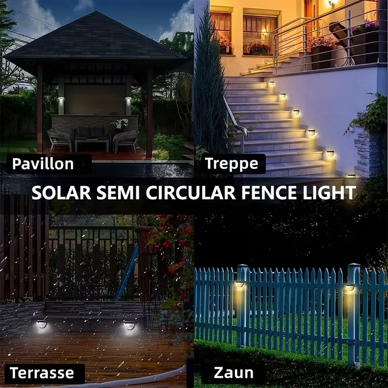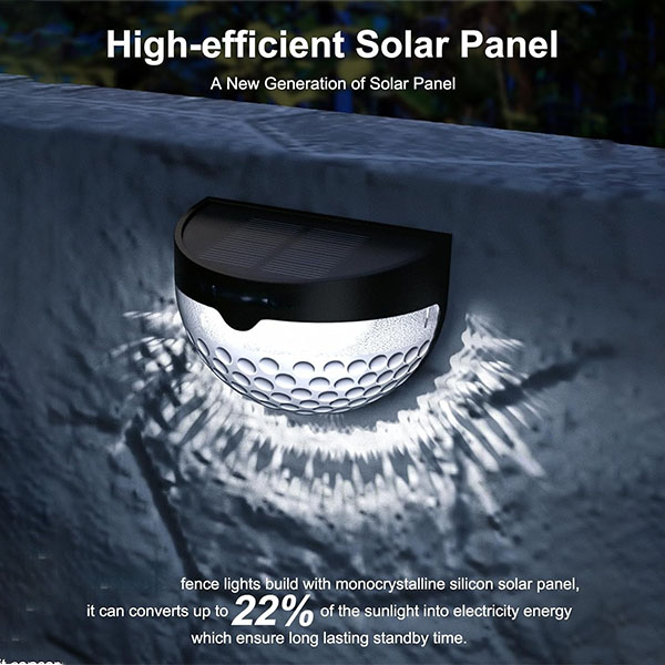 【Wireless & Easy Installation Fence Lights】Just two screws or double-sided tape can fasten the solar deck lights to any flat surface like fence, wall, step edge, stair handrail, railing, etc. The solar fence lights have no messy wires and can be installed without professional workers.