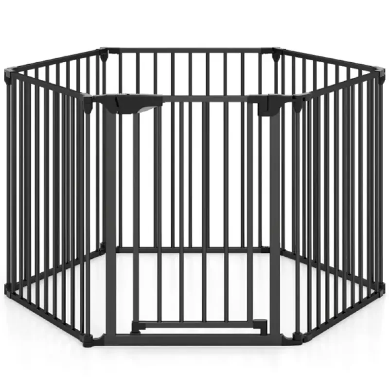 6-Panel Expandable Safety Gate (34.5"-154"), 270° Rotatable Baby/Pet Barrier For Fireplace Stairway Doorway-Black