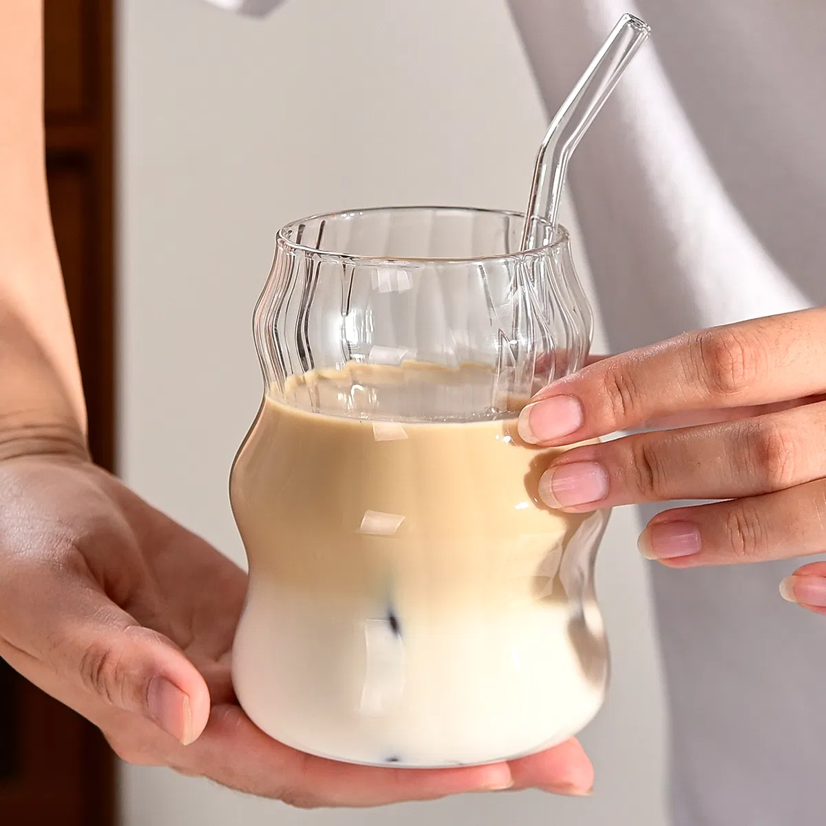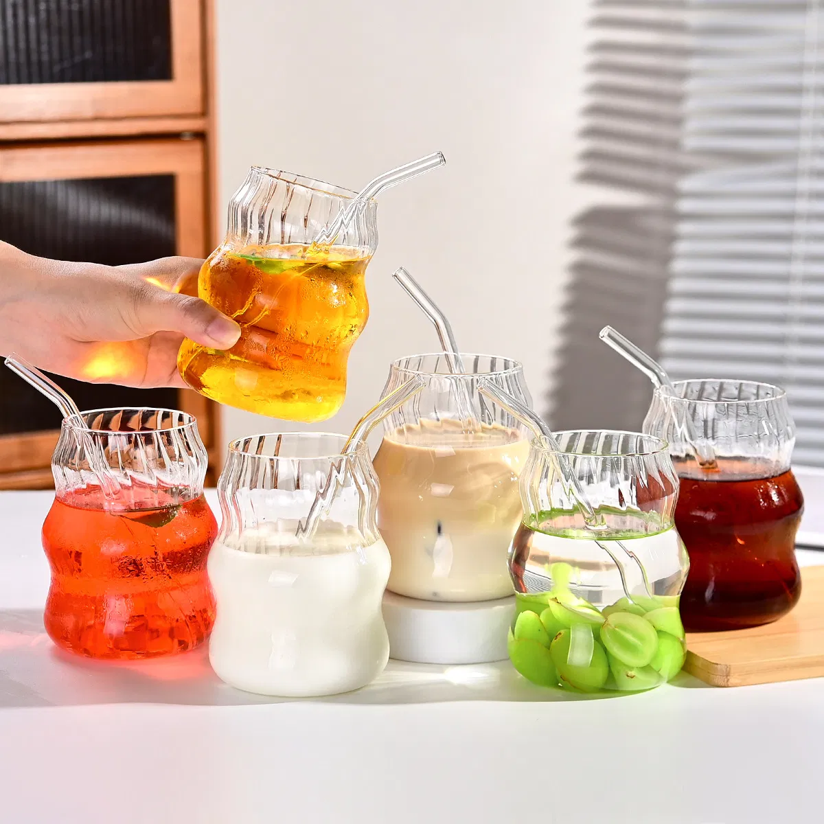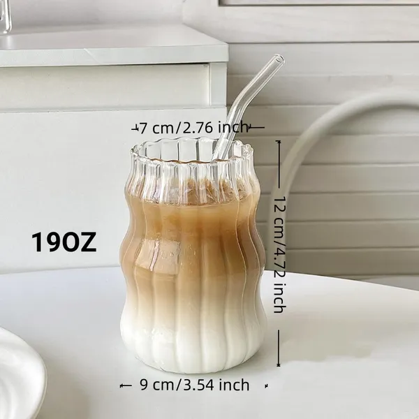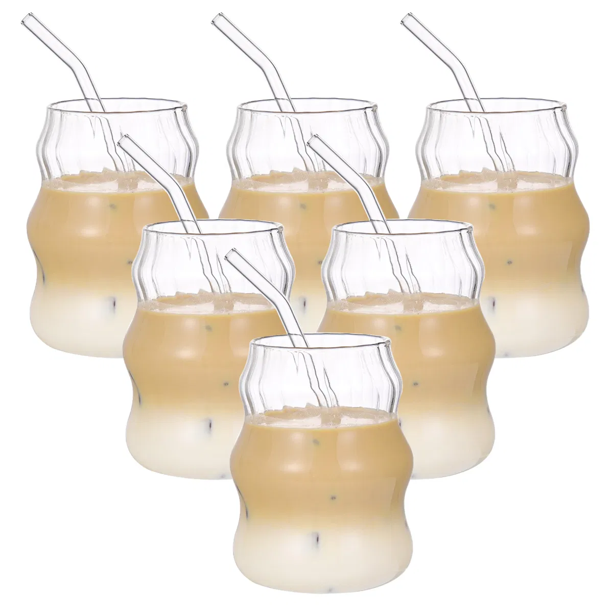 6 Pcs 19 Ounce Glass Straw Cup, Coffee Cup, Milk Cup, Juice Cup, Cold Drink Cup, Tea Cup, Water Cup, Office Cup, Striped Cloud Cup