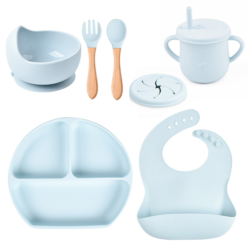 Specification: A smiley plate silicone bowl Bowl Cup with straw bib wooden handle spoon wooden handle fork, B Smiley plate silicone bowl Bowl Cup with straw bib pure silicone spoon pure silica gel fork, C Smiley plate silicone bowl Bowl Cup with straw bib wooden handle spoon wooden handle fork snack cup lid, Smiley plate silicone bowl bib wooden handle spoon wooden handle fork, Smiley plate silicone bowl Bowl Cup with straw bib pure silicone spoon pure silica gel fork snack cup lid