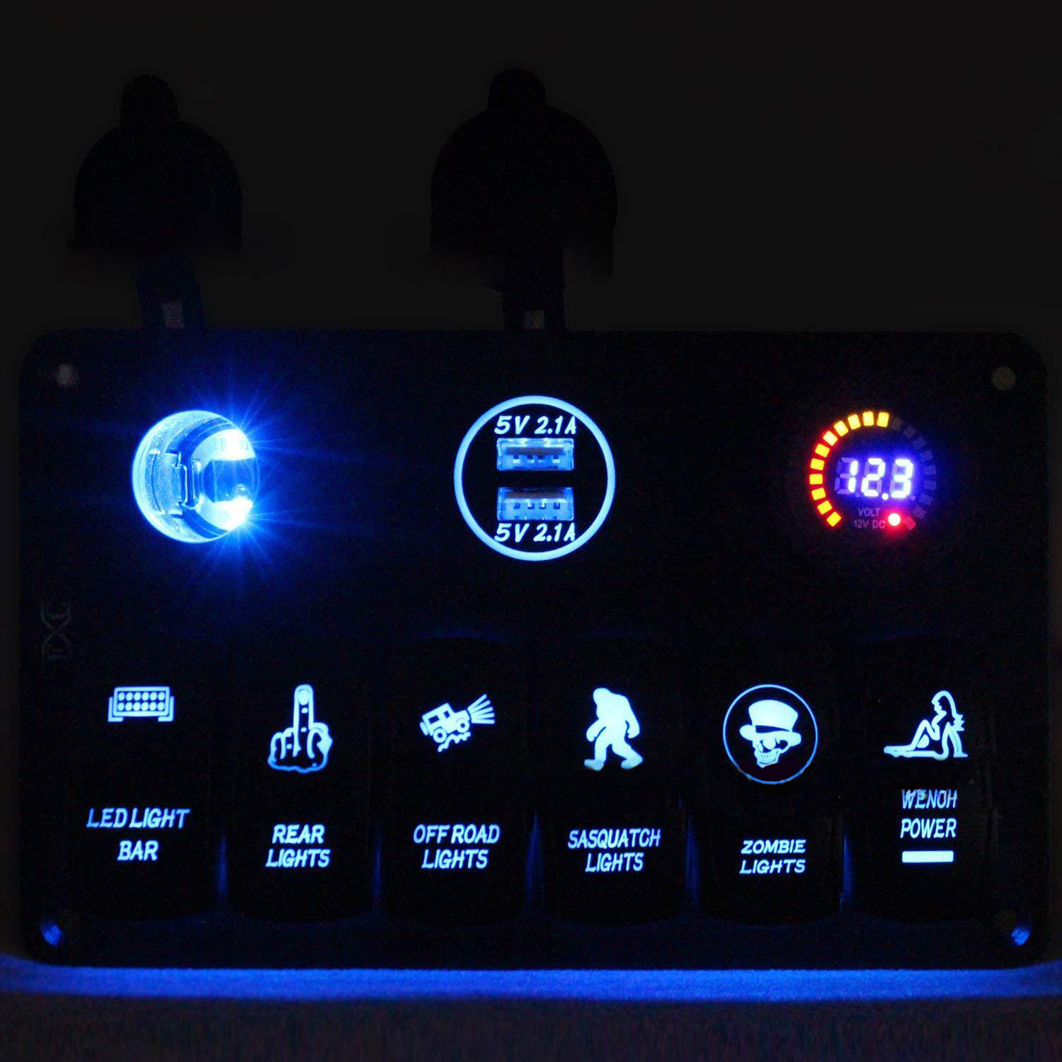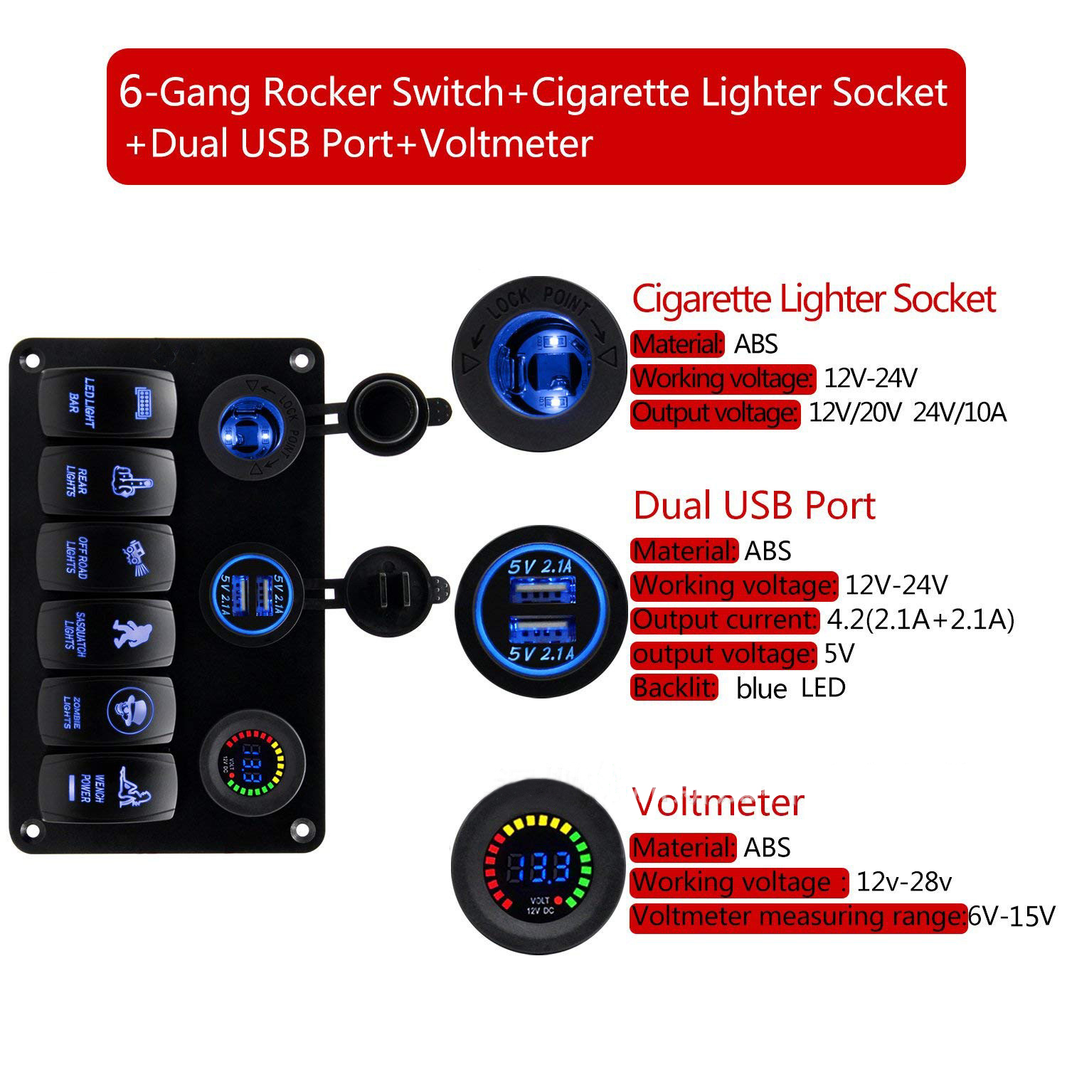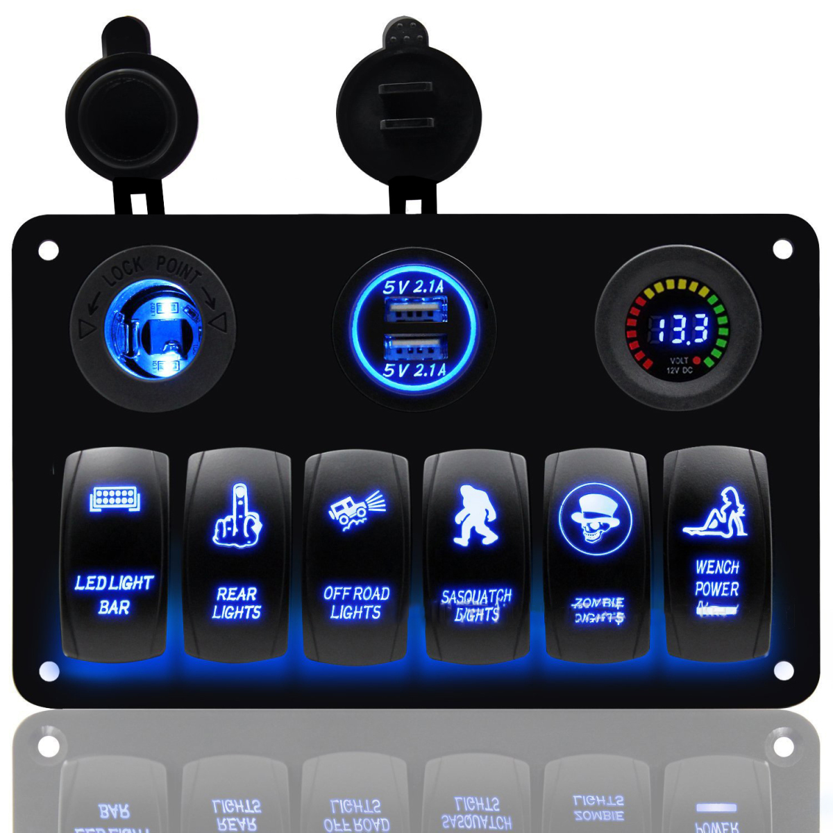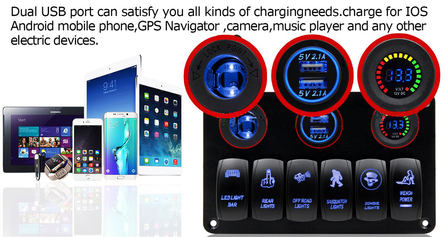 6-Position Ship Switch Panel Dual USB Charger + Color Screen Voltmeter + Cigarette Lighter Combination