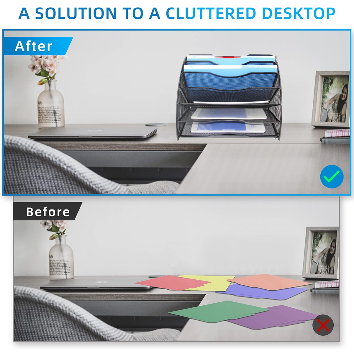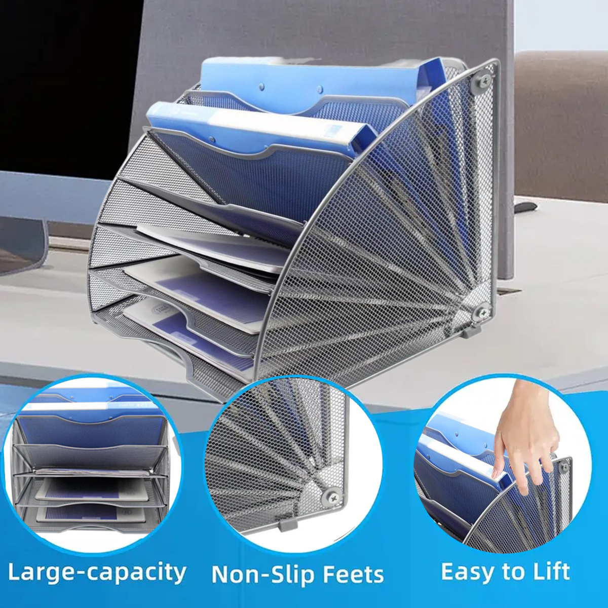 Package contents: 1 Pack 6-Tier Fan-Shaped Mesh File Rack