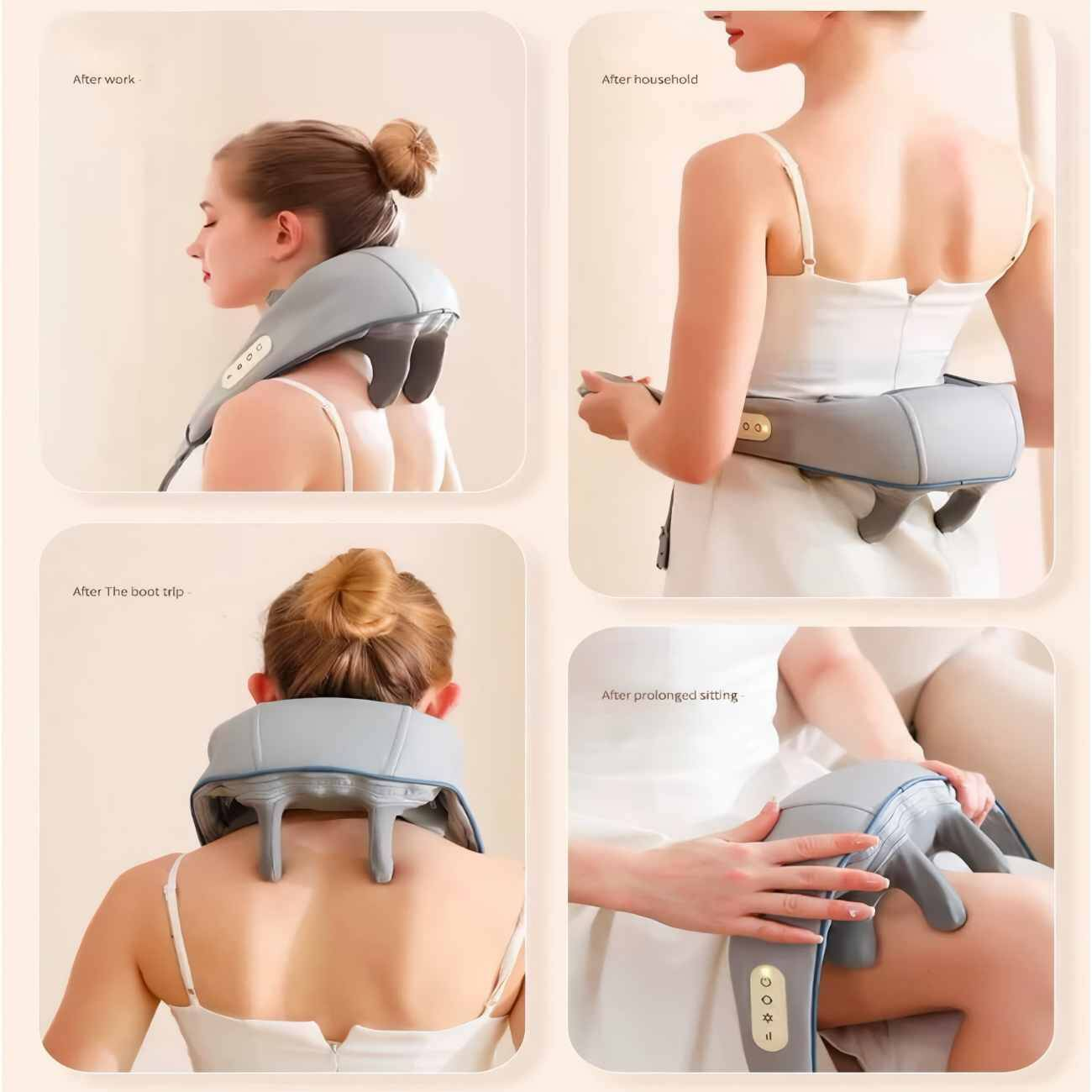 6-Way Kneading Neck Massager For Pain Relief Deep Tissue Portable Cordless Electrical Cervical Neck Massager Multi-Point Shiatsu Massager For Shoulder, Back, Waist & Limbs, Adjustable Intensity