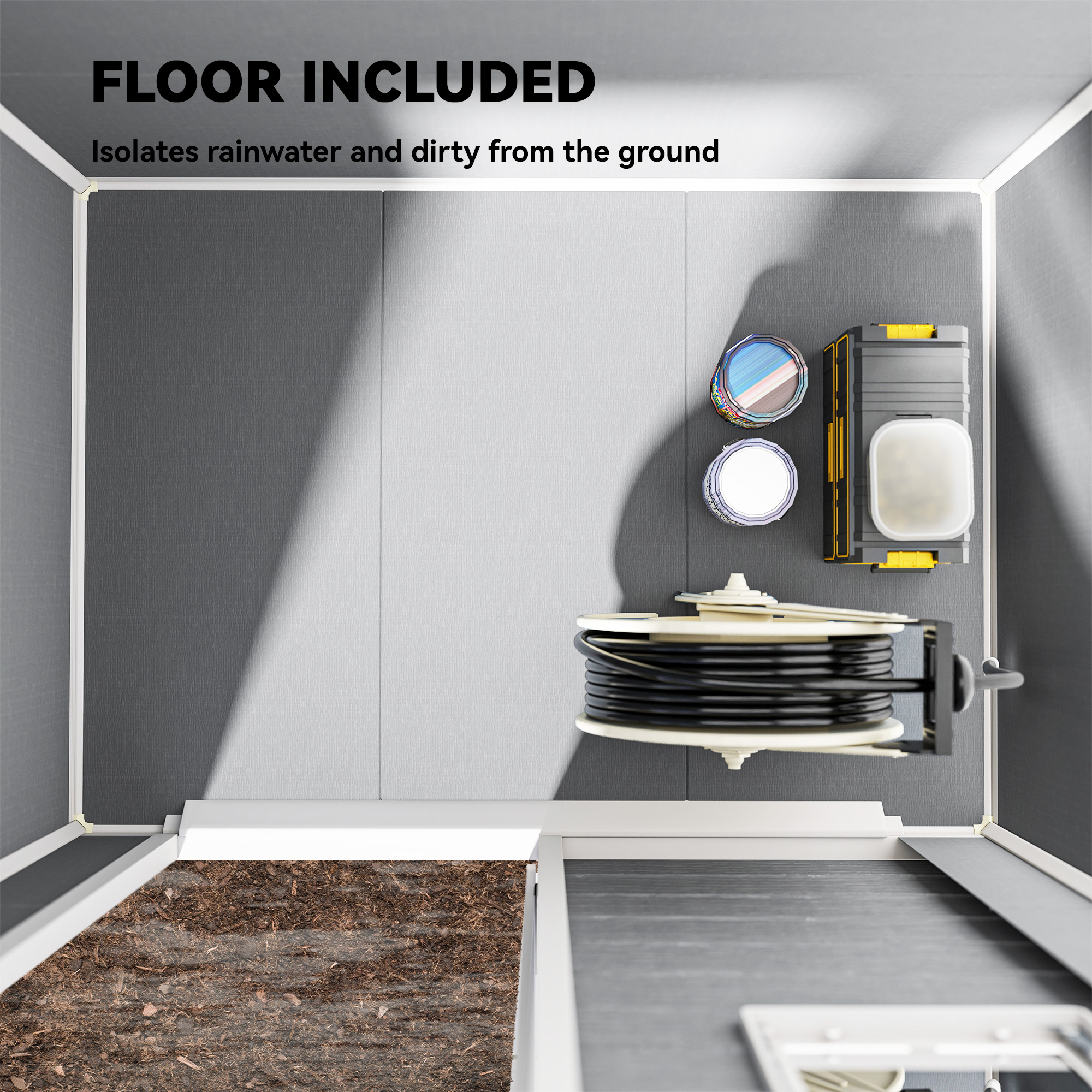 Discover the plastic garden shed, where style meets functionality. Spanning 182 x 121 x 200cm, this outdoor shed provides a spacious 163 x 101cm interior, clad in 12mm thick, wood-effect polypropylene resin that's not only waterproof and UV resistant but incredibly chic. With a clear window for natural light and dual vents, it ensures your belongings stay dry and fresh.