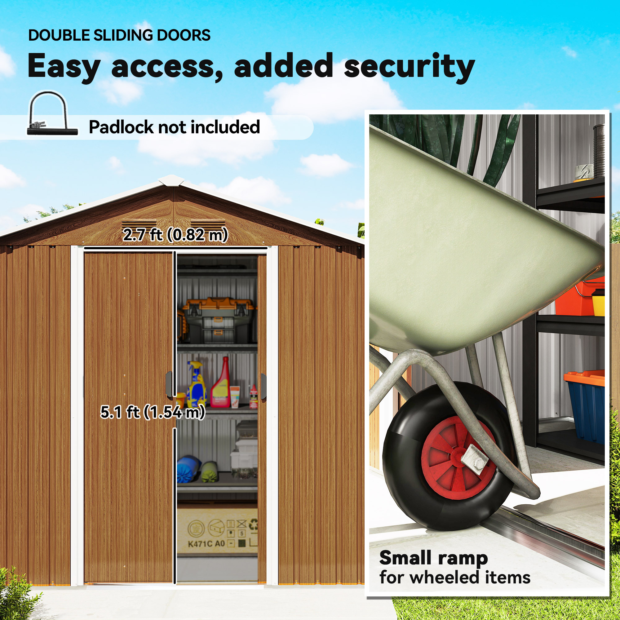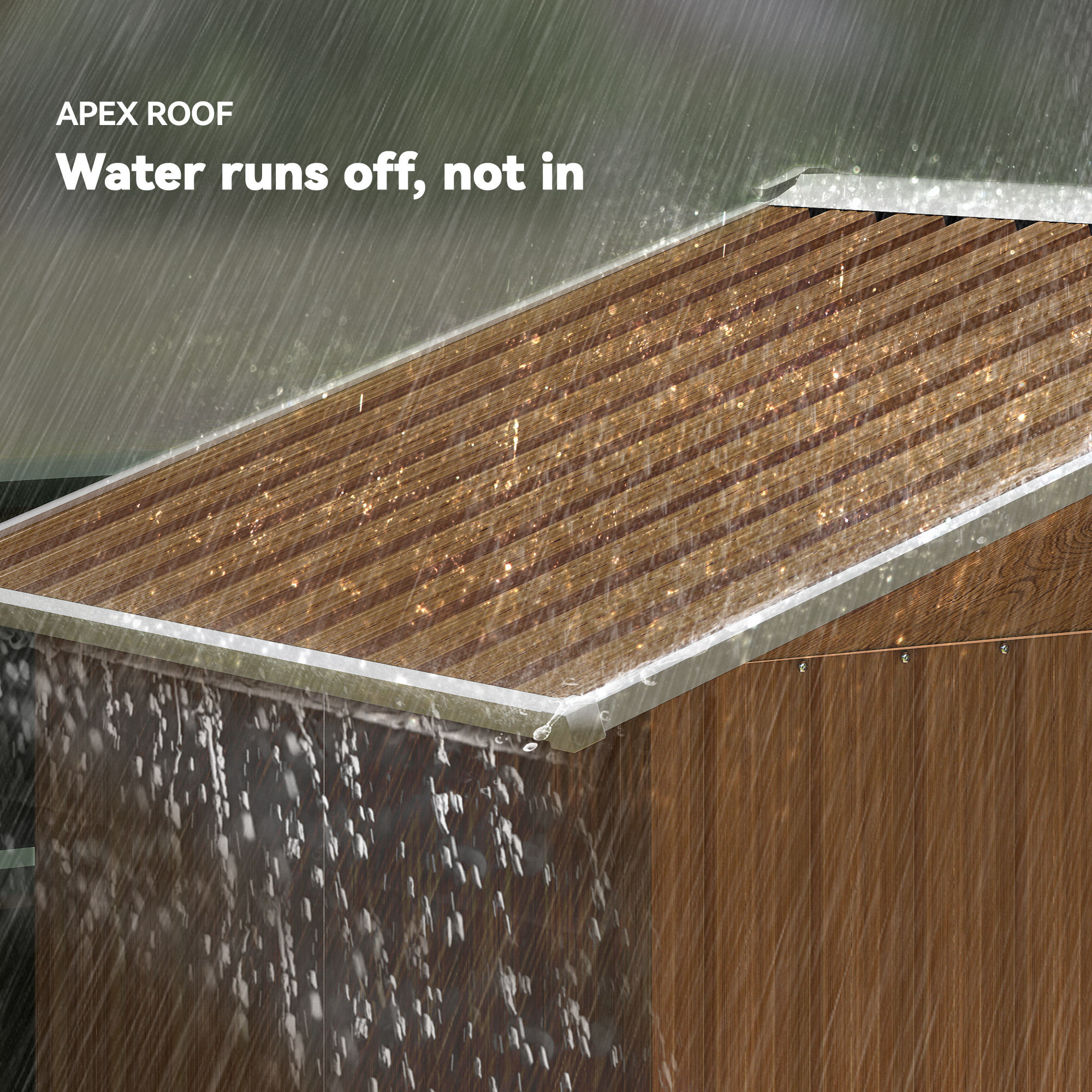 Securely store your garden equipment and outdoor essentials with the 3.6 x 6.3ft metal garden shed. Constructed from galvanised steel, it offers lasting reliability. The double sliding doors on the front provide convenient access, while the four vents promote air circulation to prevent moisture buildup. With a protective weather coating, this metal bike shed is suitable for year-round outdoor use, ensuring your items stay safe and protected.