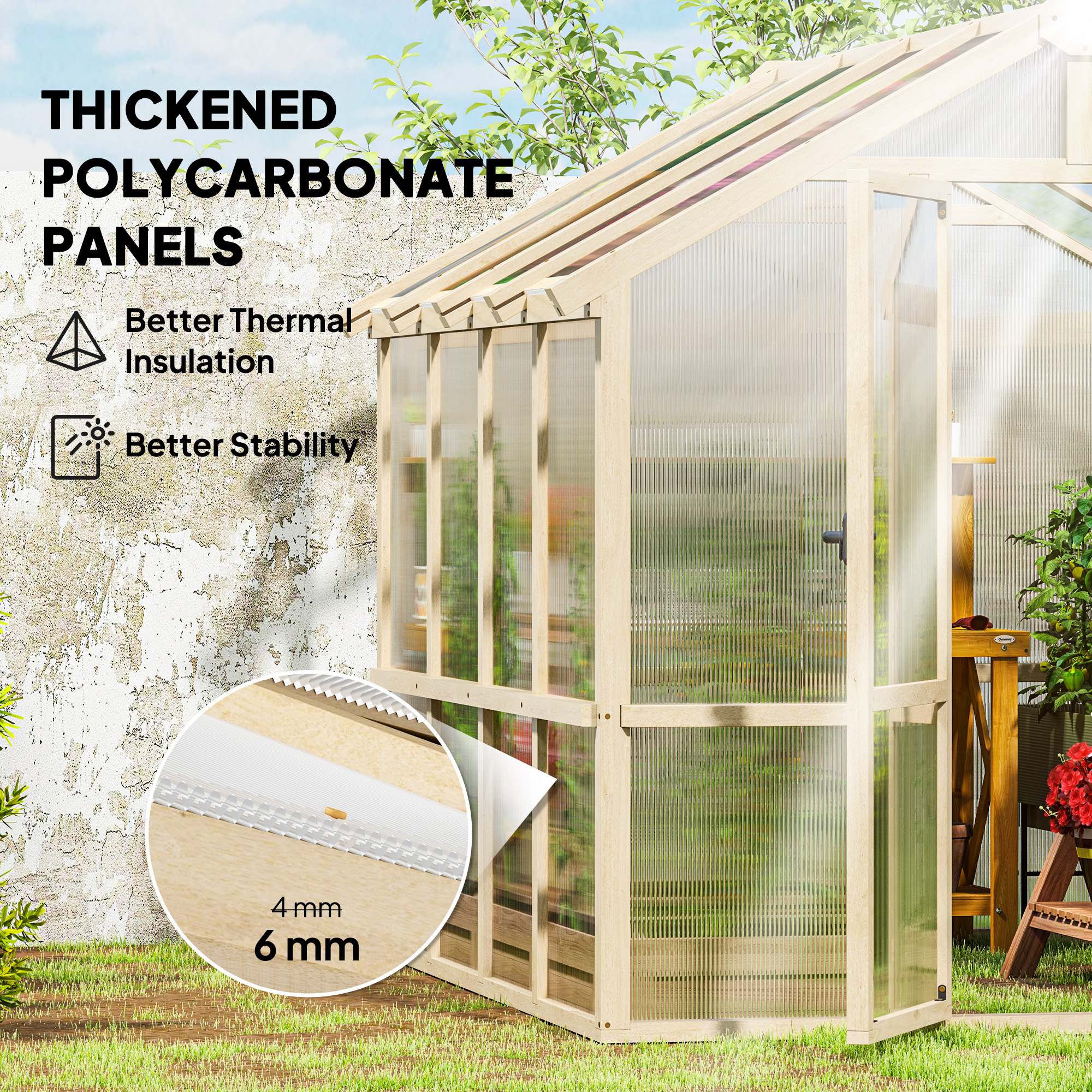6.6 X 8 Ft. Polycarbonate Greenhouse Wooden Walk-in Greenhouse Kit With Thickened Panels, Roof Vent, And Lockable Door