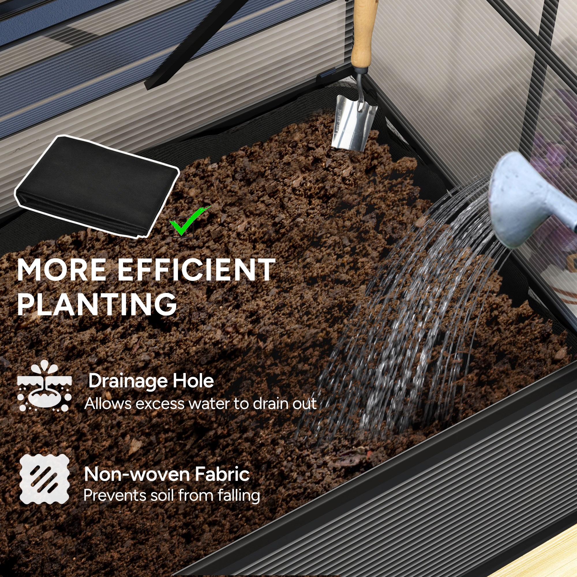 Growing plants has just gone up a level with this raised garden bed. This raised planter also comes with a cover - a safe shield for your plants. The plastic panelled box features flip up vents and a slanted roof to bring in fresh air when needed. The bed liner keeps soil inside, finished with two drainage holes to allow water to gently drain.